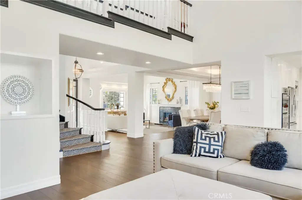 Located on the highly desirable inner loop of the Port Streets and within Phase 1 of the community, this custom residence offers close proximity to the greenbelt and a well-positioned setting within one of Newport Beach’s most sought-after neighborhoods. The home features light-filled interiors with vaulted ceilings, skylights, and wide-plank oak flooring throughout. A formal living room with fireplace and a separate dining area provide defined entertaining spaces, while the open-concept kitchen and family room serve as the central gathering area of the home. The kitchen includes porcelain countertops, a large center island, upgraded appliances, and custom cabinetry. French doors open to the backyard, creating a seamless indoor-outdoor flow. The private outdoor space includes a spool with waterfall feature, fire pit, and a generous grassy area suitable for a variety of uses. The floor plan includes a main-level bedroom with an oversized full bath, offering flexible use for guests or additional living space. All bedrooms are generously sized. Upstairs, the primary suite is situated on its own wing of the home and includes dual walk-in closets and a spa-style bathroom. Two additional bedrooms feature built-in desks and storage, and a spacious bonus room offers the potential to be converted into a fifth bedroom. A dedicated laundry room completes the upper level. Additional features include surround sound and a three-car garage with epoxy flooring. Port Street residents have access to community pools, clubhouses, sports courts, parks, and walking trails, along with convenient proximity to Andersen Elementary School, Fashion Island, local beaches, and John Wayne Airport.