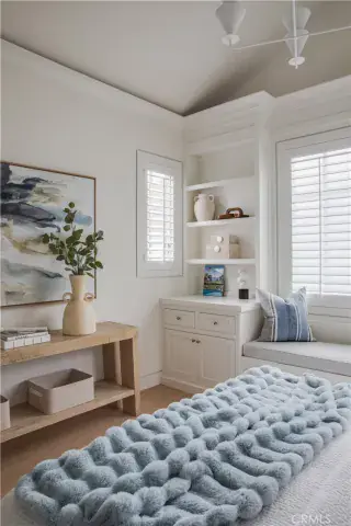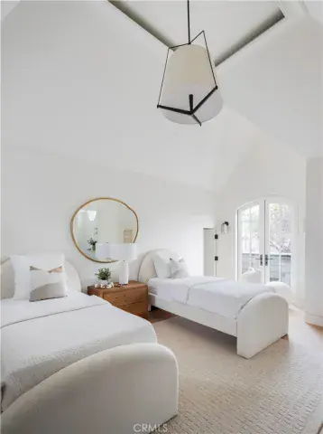 Upstairs, four en-suite bedrooms provide privacy and volume, including one with a hidden “secret room.” The primary suite is a private retreat with fireplace, deck, custom built-ins, and a fully reimagined spa-inspired bath featuring a steam shower, oversized soaking tub, and a customized walk-in closet with illuminated rods.