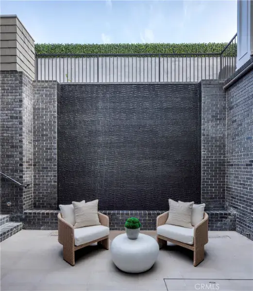 The 2,500-square-foot lower level is immersive and unexpected, offering a glass-enclosed gym, executive office, multipurpose or playroom, and a fully upgraded private home theater with new equipment, custom velvet seating included, stadium tiers, and a performance stage. A two-story exterior fountain adds a dramatic architectural element and a sense of arrival.