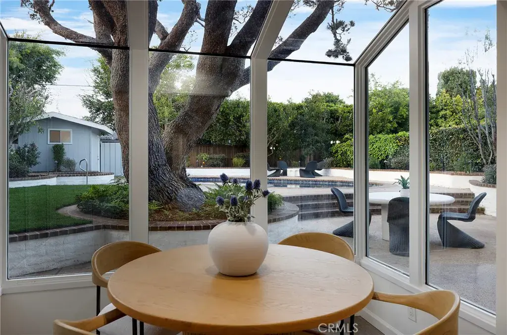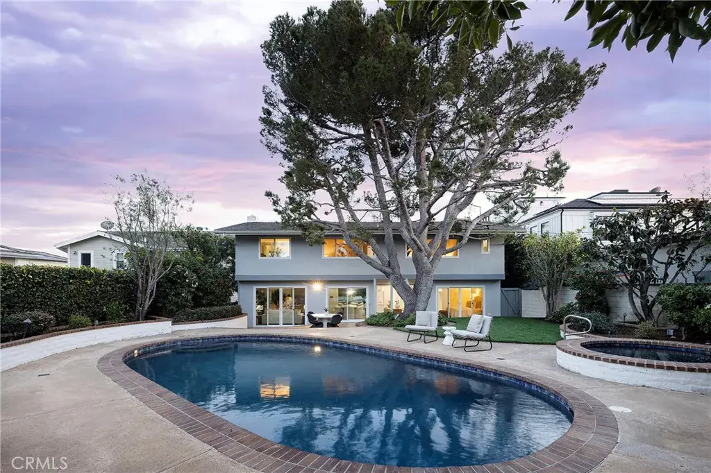 Positioned on one of the largest lots along sought-after Kings Road, this rare Newport Beach offering is defined by exceptional privacy, space, and views. From its elevated second level, the residence captures sweeping harbor, ocean, and Catalina Island views, a view that is increasingly rare in this coastal enclave. The multilevel home is filled with natural light, creating a bright and welcoming atmosphere throughout. A breakfast nook overlooks the backyard and pool, while the main level also features a primary bedroom with a walk-in closet, a spacious full bath with dual sinks, and a dedicated laundry room. Designed to embrace Southern California’s indoor-outdoor lifestyle, the grounds are anchored by an inground gunite pool and spa enhanced with new plaster and tile. A detached pool cabana with a changing room and a 3/4 bath adds resort-style functionality for entertaining or relaxed weekends at home. The backyard offers generous space to gather and host year-round. Upstairs, a second living area with vaulted ceilings, a wet bar, and picturesque views provides an inviting place to unwind. Three additional bedrooms and two bathrooms complete the upper level, including a main bedroom with an ensuite bath and walk-in closet. A two-car garage adds everyday convenience, while the expansive lot offers a level of space rarely available in the area, all just moments from the bay and nearby beaches. A rare opportunity to enjoy panoramic views and coastal living in one of Newport Beach’s most sought-after neighborhoods.