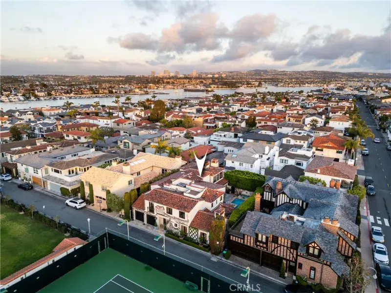 A RARE OPPORTUNITY TO LIVE THE VERY BEST OF LIDO ISLE. Beautifully remodeled and thoughtfully updated, this Spanish Coastal–inspired residence blends timeless design with modern comfort and exceptional craftsmanship. Ideally positioned just steps from Lido’s private beach and clubhouse, and directly across from a wide grassy park, the home offers an extraordinary combination of style, space, outdoor living, and premier location—a blend that is seldom available on the island. Situated on an exceptional 70-foot-wide interior lot—more than twice the width of most Lido Isle parcels—this beautifully landscaped property provides approximately 5,507 square feet of well-designed living space with 5 bedrooms and 5.5 bathrooms, offering privacy, scale, and a relaxed coastal lifestyle rarely found on Lido Isle. The main level is designed for both everyday living and entertaining, featuring a welcoming living room with fireplace, formal dining area, dedicated wine room, and a gourmet kitchen with a sun-filled breakfast nook overlooking the gardens. Nearby, a separate family room with elegant bar and fireplace opens to the outdoor spaces, creating effortless indoor-outdoor flow. Expansive doors lead to lush gardens, a resort-style pool and spa—a true rarity on Lido Isle. A main-level bedroom suite and private office with French doors opening to the charming strada patio complete the first floor. An elevator provides access to the second level, where a loft/den, three additional en-suite bedrooms, and a spacious primary retreat await. The primary suite features a fireplace and adjoining sitting room ideal for an office, fitness space, or private retreat.