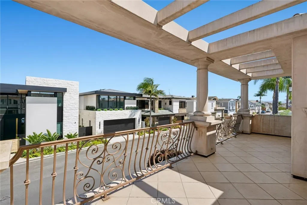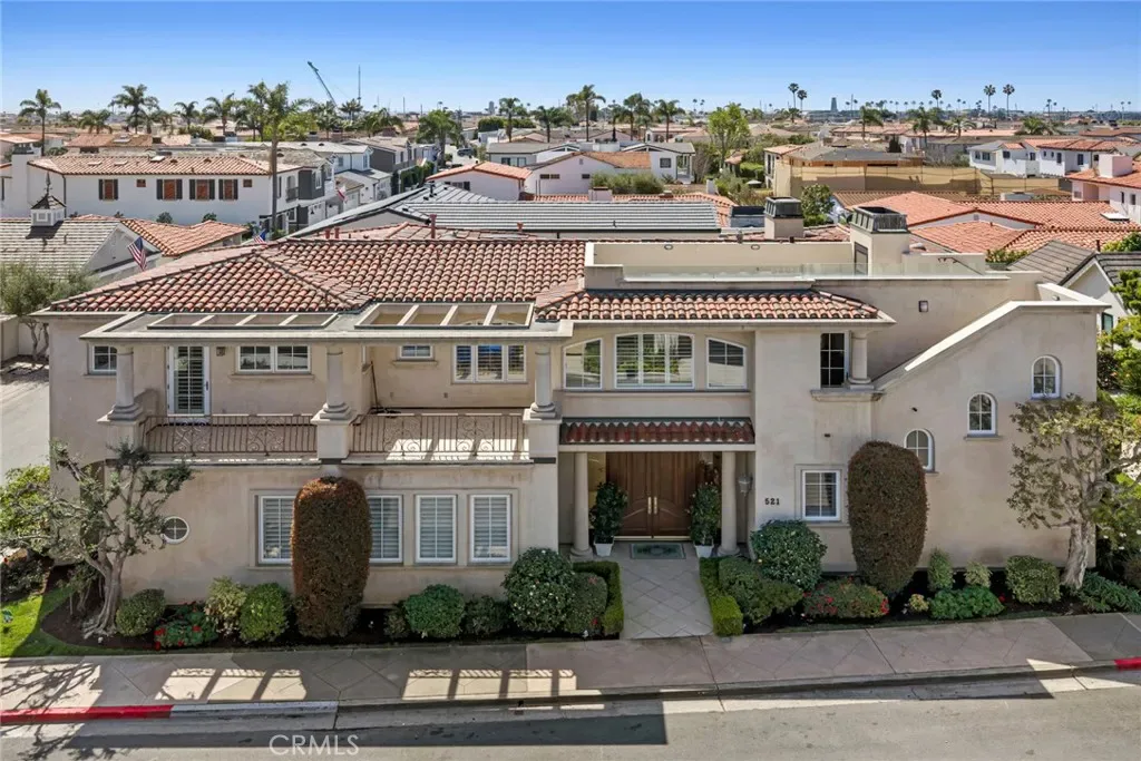 Located on one of Lido Isle’s most premier streets, this architectural gem sits on a beautifully landscaped and rare 51-foot-wide lot offering expanded frontage seldom found on the island. Designed and built by renowned architect Chris Light, this elegant residence blends timeless design with luxurious comfort.Spanning approximately 4,800 square feet, the home offers 5 bedrooms and 6 bathrooms, filled with natural light and thoughtfully designed throughout. Highlights include two interior staircases, vaulted ceilings in all upper-level rooms, four fireplaces, a media room, private office, dual primary suites, and an expansive rooftop deck.A grand entry with double mahogany doors opens to a spacious great room featuring a statement fireplace and custom built-ins. The gourmet kitchen opens seamlessly to the living space and is equipped with a Dacor 6-burner range with grill and oven, Sub-Zero refrigerator, dual dishwashers, microwave, warming drawer, and wine refrigerator, all enhanced by custom finishes and designer lighting.The adjacent breakfast area provides generous space for dining, along with a pantry, built-in desk, and abundant storage. The formal dining area overlooks the charming strada patio, while a nearby den with fireplace offers an inviting secondary living space. Double French doors throughout create seamless indoor-outdoor flow, welcoming ocean breezes and offering a private setting ideal for entertaining.The main level includes a guest suite with an en-suite bath.Upstairs, the primary suite features a sitting area, fireplace, wet bar, and a spacious bath with dual vanities, soaking tub, separate shower, and two walk-in closets. Additional bedrooms include a Jack-and-Jill suite with an adjoining office or optional bedroom, as well as a second primary suite with private balcony access. A media room with wet bar and built-in cabinetry completes the upper level.The rooftop deck captures panoramic views and features a fireplace, along with utility connections for a sink, BBQ, refrigerator, and sound system creating the ultimate outdoor retreat. An oversized garage provides ample built-in storage.Enjoy the coveted Lido Isle lifestyle, including a private beach, yacht club, parks, tennis and pickleball courts, and walkable access to Lido Marina Village