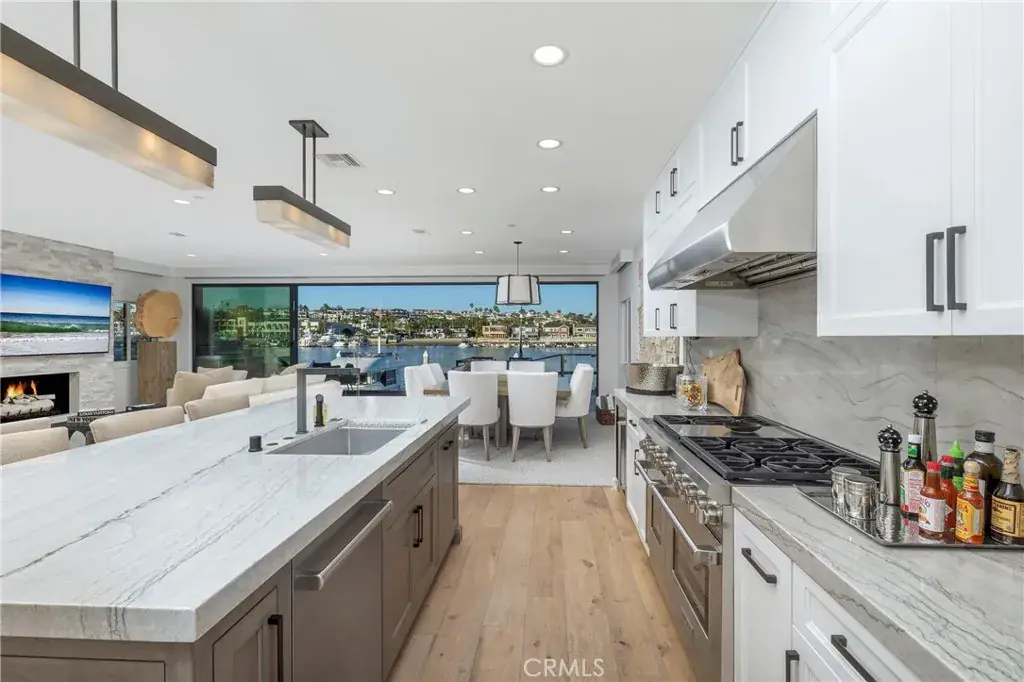 704 Via Lido Nord presents an extraordinary bayfront opportunity on the highly coveted eastern tip of Lido Isle—newly enhanced to elevate its already exceptional appeal. Showcasing spectacular 180-degree views of Newport Harbor, this coastal contemporary residence enjoys 35 feet of premium frontage along the renowned Nord channel, offering an ever-changing panorama of sailing activity, sparkling evening lights, and distant mountain silhouettes. Upon arrival, the home’s refined yet relaxed coastal style and breathtaking sightlines immediately impress. Recent improvements thoughtfully elevate the property while preserving its timeless design, including the installation of a Fleetwood window system, automated shades, and various upgraded finishes—creating a residence that feels beautifully renewed and impeccably maintained. Nearly 3,200 square feet of sophisticated living space is defined by an open, flowing floor plan, high ceilings, designer details, elegant stonework, and hardwood flooring. The expansive Fleetwood sliders open wide to frame unobstructed harbor views and welcome abundant natural light. The main level is designed for effortless entertaining and everyday living, featuring a spacious living room with seamless indoor-outdoor connection, a dining area positioned to capture the views, and a gourmet kitchen appointed with top-tier appliances. A desirable first-floor bedroom suite—ideal as an office or guest retreat—adds versatility. Additional highlights include an elevator, upgraded systems, and meticulous craftsmanship throughout. The waterfront patio showcases a redesigned deck and updated seaside seating, creating an inviting vantage point for year-round enjoyment. The private dock accommodates two vessels, offering exceptional access to the harbor. Upstairs, the luxurious primary suite captures sweeping views from a generous balcony and includes a fireplace, spa-inspired bath, and large walk-in closet. Two additional en-suite bedrooms complete the second level. Ideally located near Lido Marina Village’s dining and boutiques—and just steps from the Lido Isle private beach, clubhouse, and park—this residence offers premier bayfront living in one of Newport Beach’s most sought-after waterfront settings.