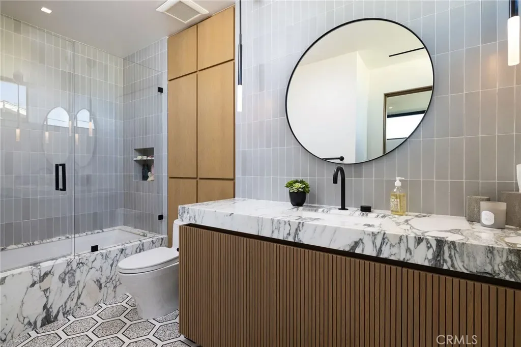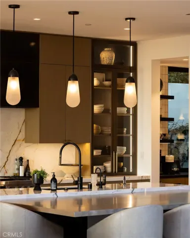 Perched along one of the most coveted stretches of Cliff Drive, this newer-construction architectural masterpiece captures unobstructed sit-down ocean and harbor views from nearly every primary living space. A rare collaboration between Brandon Architects, Erica Bryen Design, and Gonterman Construction, the approximately 5,200-square-foot residence offers 5 bedrooms and 6.5 baths, thoughtfully designed for elevated coastal living and effortless entertaining. Expansive walls of glass create seamless indoor/outdoor flow to two private patios, one with in ground jacuzzi, and a spectacular roof deck with bar, perfectly positioned for sunset entertaining- creating multiple resort-inspired outdoor living environments. Inside, warm-modern interiors are defined by wide-plank flooring, custom millwork, statement stone surfaces, designer lighting, and a striking temperature-controlled wine wall. The showpiece kitchen anchors the main level with bespoke cabinetry, oversized island, and curated finishes, opening to ocean-view living and dining spaces. A private office, beautifully appointed guest suites, and a serene primary retreat with spa-inspired bath complete the interior. An elevator services all levels, enhancing livability, while additional highlights include a three-car garage and whole-house soft water and filtration system. Meticulously executed and perfectly positioned, this is a rare opportunity to own one of the finest newer homes along Cliff Drive in Newport Beach.