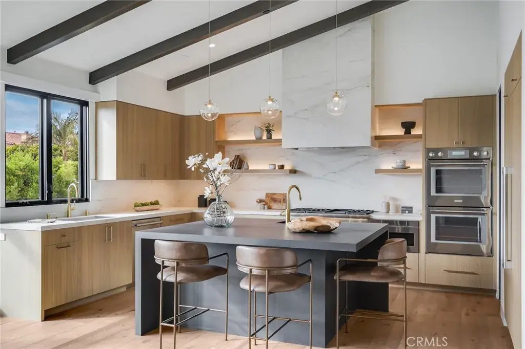 Available now for long-term lease. Be the first to experience this newly constructed, custom-designed modern residence—an exceptional offering that blends architectural sophistication with an inviting sense of home. Set on a rare double-wide parcel, this 6 bedroom, 7 bath estate includes an attached multi-level ADU and is thoughtfully designed to celebrate seamless indoor-outdoor living. From the moment you enter, the home makes a striking yet welcoming impression. Natural materials, soaring ceilings, and expansive walls of glass bathe the interiors in light, creating an atmosphere that feels both contemporary and warm. The open-concept living spaces are anchored by a dramatic two-story limestone fireplace and illuminated by a show-stopping custom chandelier crafted from European hand-blown glass—setting the tone for the exceptional craftsmanship found throughout. At the heart of the home is a beautifully curated kitchen designed for both everyday living and effortless entertaining. An oversized island, sleek Dekton countertops, custom minimalist cabinetry, top-tier chef’s appliances, a walk-in pantry, and a fully equipped secondary caterer’s kitchen make this space as functional as it is stunning—perfect for intimate dinners or lively gatherings alike. The primary suite is a private sanctuary, featuring dual walk-in closets, a spa-inspired bath designed for total relaxation, and a generous deck ideal for morning coffee or evening unwinding. A floating staircase or custom elevator leads to the lower level, where a secondary living area opens directly to the backyard—an entertainer’s dream. Enjoy evenings under the covered loggia, around the fully outfitted bar, or beside the sparkling pool, all surrounded by lush, mature landscaping that offers privacy and tranquility. The attached two-story ADU provides a beautifully appointed, self-contained living space—ideal for extended family, guests, live-in staff, or multigenerational living. Located in the heart of Newport Heights, this exceptional home places you moments from Newport Beach’s award-winning schools, world-renowned beaches, and an array of celebrated dining, shopping, and coastal amenities. A rare opportunity to lease—or own—a truly special modern retreat in one of the area’s most desirable neighborhoods.
