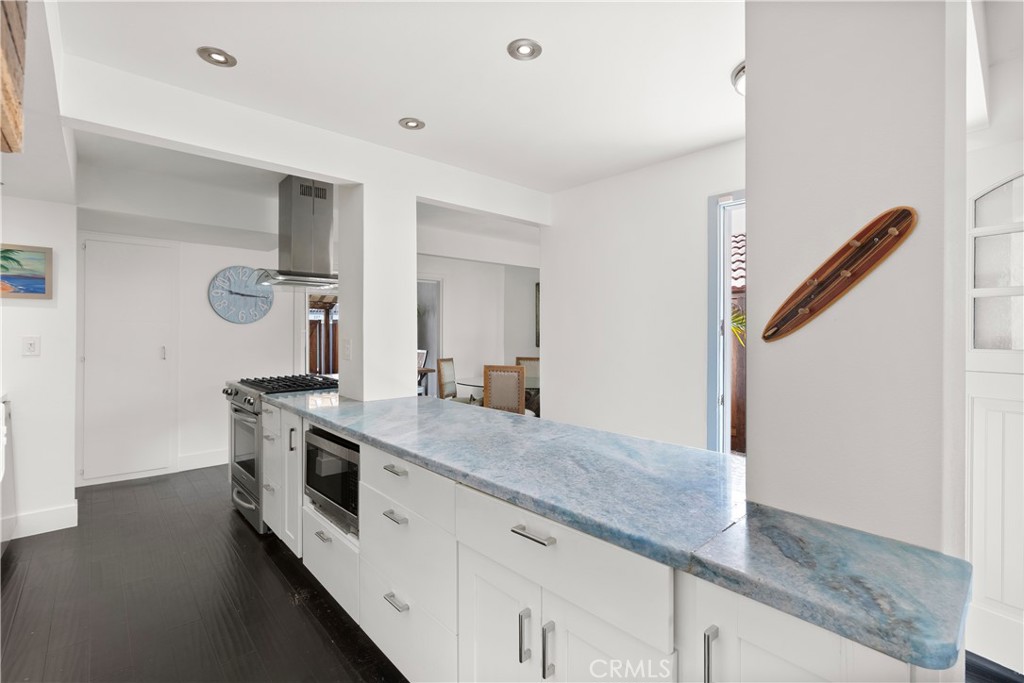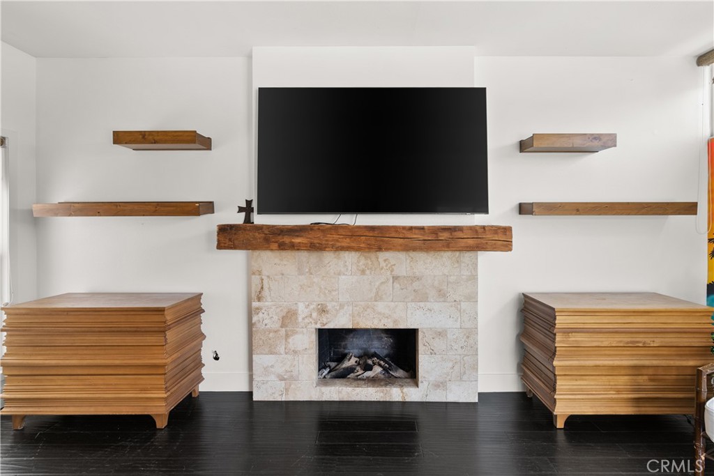The thoughtfully designed interior features three bedrooms, providing comfortable living and privacy. An open floor plan with vaulted ceilings creates a light-filled, airy ambiance, while the living area is highlighted by a charming fireplace, adding warmth and character. The kitchen is well-appointed with a gas range, stone countertops, coordinating backsplash, and generous counter space ideal for both everyday living and entertaining.