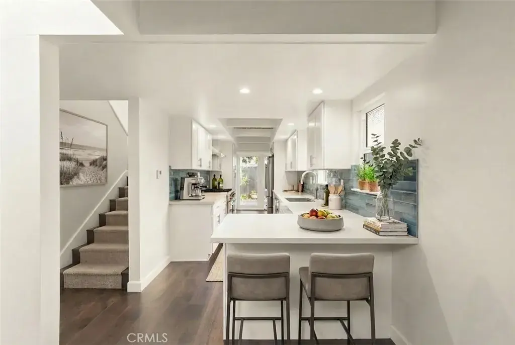 Located just two blocks from the pristine shores of Newport Beach, this beautifully remodeled three-bedroom, two-bathroom home combines modern luxury with coastal charm. Step inside to discover an open floor plan featuring dramatic cathedral ceilings. At the heart of the home, the kitchen has been thoughtfully renovated with top-of-the-line appliances and sleek finishes. Adjacent to the kitchen, the dining area opens onto a private patio, perfect for alfresco dining or enjoying your morning coffee. The primary suite is complete with an ensuite bathroom meticulously designed to provide a spa-like experience. The additional bedrooms feature high ceilings, ample closet space, and an abundance of natural light, as well as a shared beautifully remodeled bathroom. Enjoy ocean breezes and sunshine in outdoor spaces tailored for both relaxation and entertainment. A spacious balcony offers a serene escape, while two private patios provide ample room for gatherings with family and friends. Additional features include remodeled stone-clad bathrooms, open-beamed ceilings, hardwood flooring, recessed lighting, a fireplace, and a two-car garage. Located in the vibrant community of Newport Shores, this home offers an unparalleled lifestyle in a highly sought-after location as well as the amenities of the Newport Shores Community Association, including a clubhouse, pool, tennis courts, pickleball, volleyball, basketball, BBQ facilities, and a play area.