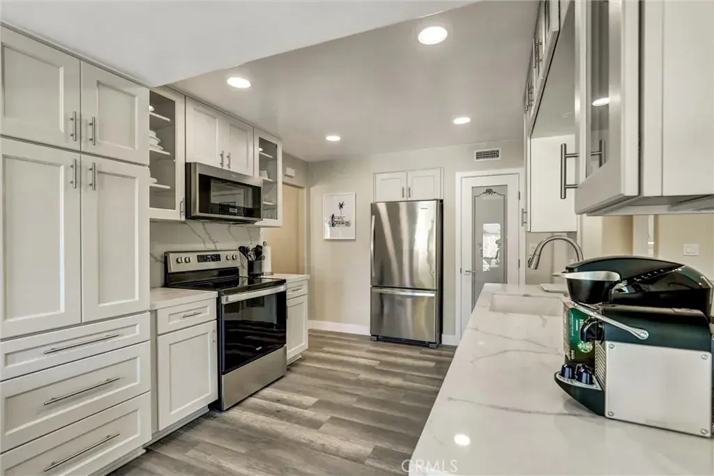 Fully furnished with a renovation that was just completed, includes fresh new paint, luxury vinyl plank flooring, new kitchen and bathroom cabinets and counter tops, new appliances, new doors, new recessed lighting, new roof, new custom window coverings and all new furniture and furnishings.