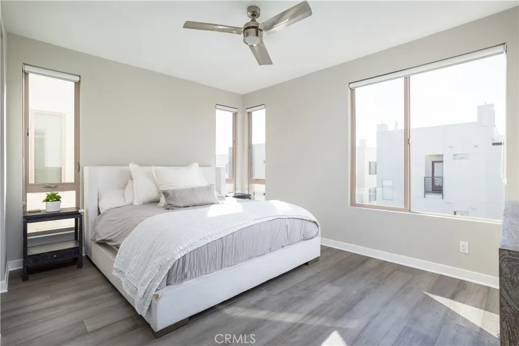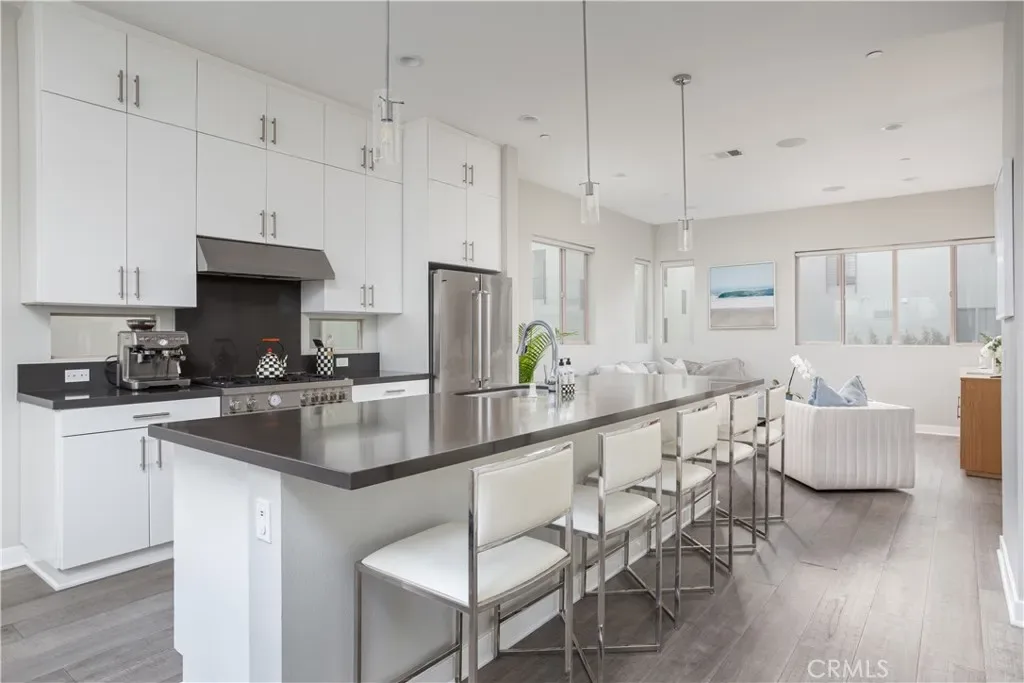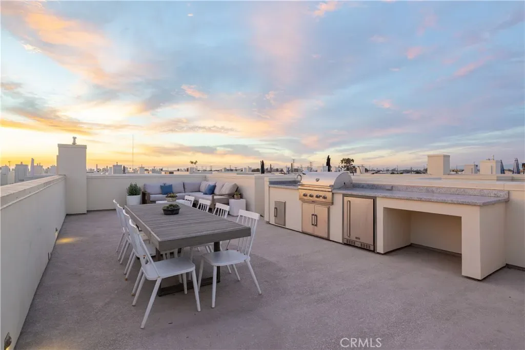 Experience elevated coastal living in this light-filled, multi-level residence that blends modern design with effortless beachside appeal. Thoughtfully updated throughout, the home offers a clean, contemporary aesthetic paired with a highly functional layout designed for everyday living and entertaining alike. The main living level features an open-concept floor plan where the living room flows seamlessly to a private balcony, inviting ocean breezes and abundant natural light. A conveniently located powder room serves guests, while the adjacent kitchen and dining area anchor the space with both style and practicality. The gourmet kitchen is outfitted with Italian Bertazzoni appliances and sleek quartz countertops, making it equally suited for casual meals and elevated entertaining. Three ensuite bedrooms provide comfort and privacy, each offering its own serene retreat. The lower-level bedroom opens directly to a private patio, creating an ideal indoor-outdoor escape. At the top of the home, the rooftop deck delivers a true showpiece — complete with an outdoor kitchen and sweeping panoramic views, perfect for hosting gatherings or unwinding beneath the evening sky. Ideally located near freeways, beaches, and a curated selection of coffee shops and restaurants, this home offers the best of beach city living with convenience, style, and flexibility.