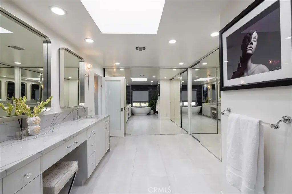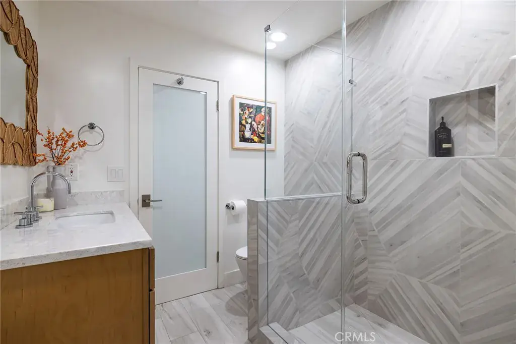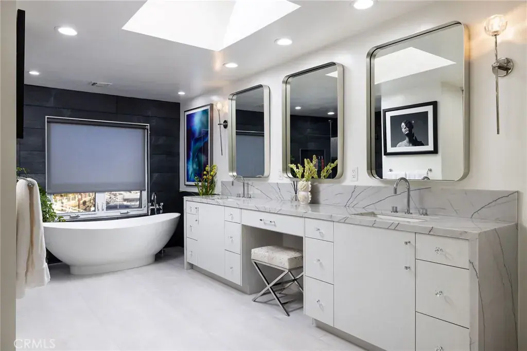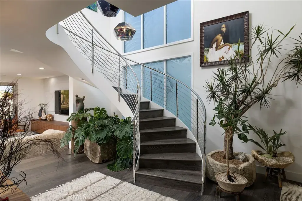 Design-forward living is evident upon arrival, introduced by newly installed custom tinted garage doors with walnut frames and a custom walnut-and-glass pivot front door with matching gate. Spanning approximately 4,440 square feet, the thoughtfully designed floor plan offers four en suite bedrooms and four-and-one-half baths, including a main-level suite ideal for guests or multigenerational living.