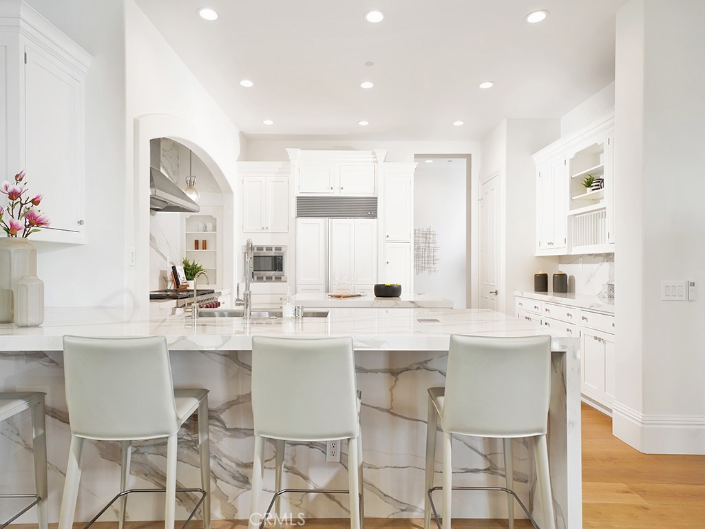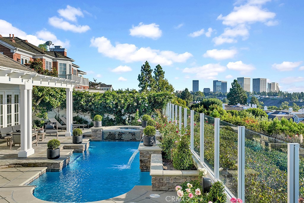 CATALINA VIEWS | PROVIDENCE RESIDENCE | ONE FORD ROAD | Privately positioned within one of the most desirable view corridors in One Ford Road, this reimagined Providence Residence captures sweeping coastal panoramas and Catalina Island sunsets, a rare setting reserved for a limited number of homes within Newport Beach’s most sought-after guard-gated enclave. Originally part of the Providence collection and the largest floor plan offered, the residence has been refined with curated interior updates, including European wood flooring by Warren Christopher and window treatments by The Shade Store, preserving its timeless American coastal design. Spanning approx. 5,200 sq ft, the residence includes five ensuite bedrooms, including a main level suite ideal for guests or office use, formal living and dining rooms, a study, and open gathering spaces designed to transition naturally toward the outdoor terraces and coastal horizon. The grand formal entry introduces the home with proportion and symmetry as the interiors reveal the Pacific beyond, framed by French doors overlooking the yard, pool, and distant coastline. The gourmet kitchen is appointed with Wolf and Sub-Zero appliances, double ovens, walk-in pantry, and porcelain surfaces, opening to informal living areas designed for both everyday luxury living and entertaining. Upstairs, the primary suite occupies the view side of the home with an intimate fireplace, dual dressing closets, spa-inspired bath with soaking tub, and the signature observatory retreat unique to the Providence plan four, offering elevated coastal sightlines. Three additional ensuite bedrooms are arranged along the opposite wing, providing separation and privacy, while the upper-level study offers flexibility for office use, work, or retreat. Outdoor spaces are oriented toward the view, where the saltwater pool & spa, Alfresco barbeque, fire feature, and landscaped grounds inspired by Roger’s Gardens complement the home’s coastal exposure. Residents of One Ford Road enjoy one of Newport Beach’s most established guard-gated communities, with resort-style amenities, pools, fitness center, and private community family events. Moments from Fashion Island, Newport Harbor, and the beaches of Newport and Corona del Mar. Within this setting, the residence represents one of the limited Providence view homes, combining architectural scale, coastal orientation, and the enduring prestige associated with one of Newport Beach’s most recognized addresses.