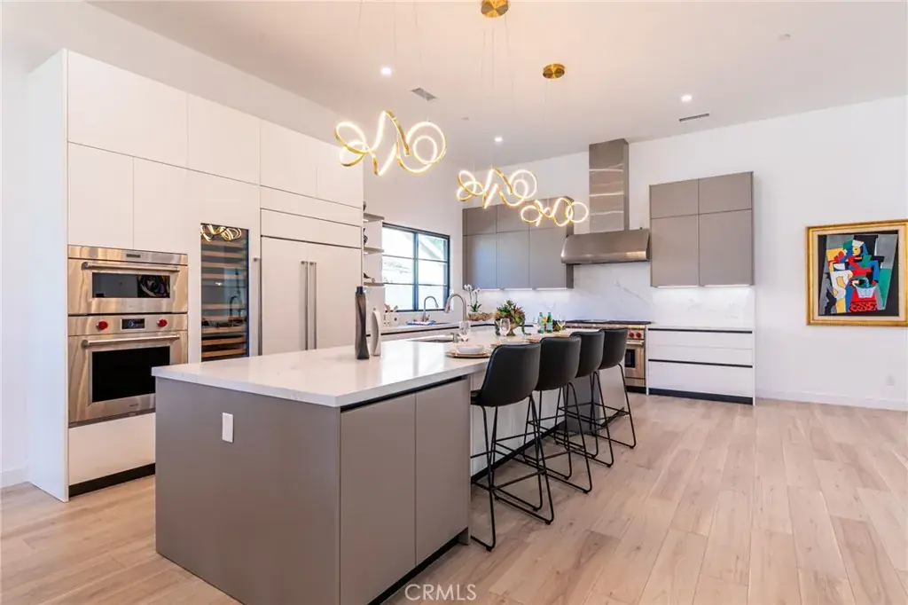 Step into the newly built single-story custom home at 20171 Bayview Ave., boasting an elegant floorplan, lofty ceilings, and sophisticated designer touches throughout. A grand 10-foot entry door ushers you into living spaces adorned with 12-foot ceilings. The kitchen features a substantial island with seating, complemented by custom Aranelli Italian cabinets and top-tier Wolf Subzero appliances including a range, refrigerator/freezer, wine cooler, and double stacked ovens (totaling four ovens) ideal for hosting large gatherings. A cozy fireplace graces the family room, while a 10-foot tall pocket door seamlessly integrates indoor and outdoor spaces, flooding the interiors with natural light. Outdoors, a concrete patio, rain sensor-equipped patio cover with remote-controlled Louvers, and a built-in barbecue island with fire pit invite entertaining. Each bedroom boasts 10-foot ceilings and custom closets. The luxurious master bathroom offers a spa-like retreat with custom tile work, dual sinks, a soaking tub, and a walk-in shower featuring Kohler plumbing fixtures. Additional features include dual-zone HVAC, designer lighting fixtures, 8-foot interior doors with designer hardware, and solar panels. Situated in an award-winning school district, moments from the Back Bay and playgrounds, and a short drive to South Coast Plaza and Fashion Island for premier dining and shopping. Easy access to the 405, 73, and 55 freeways completes this exceptional Newport Beach lifestyle offering.