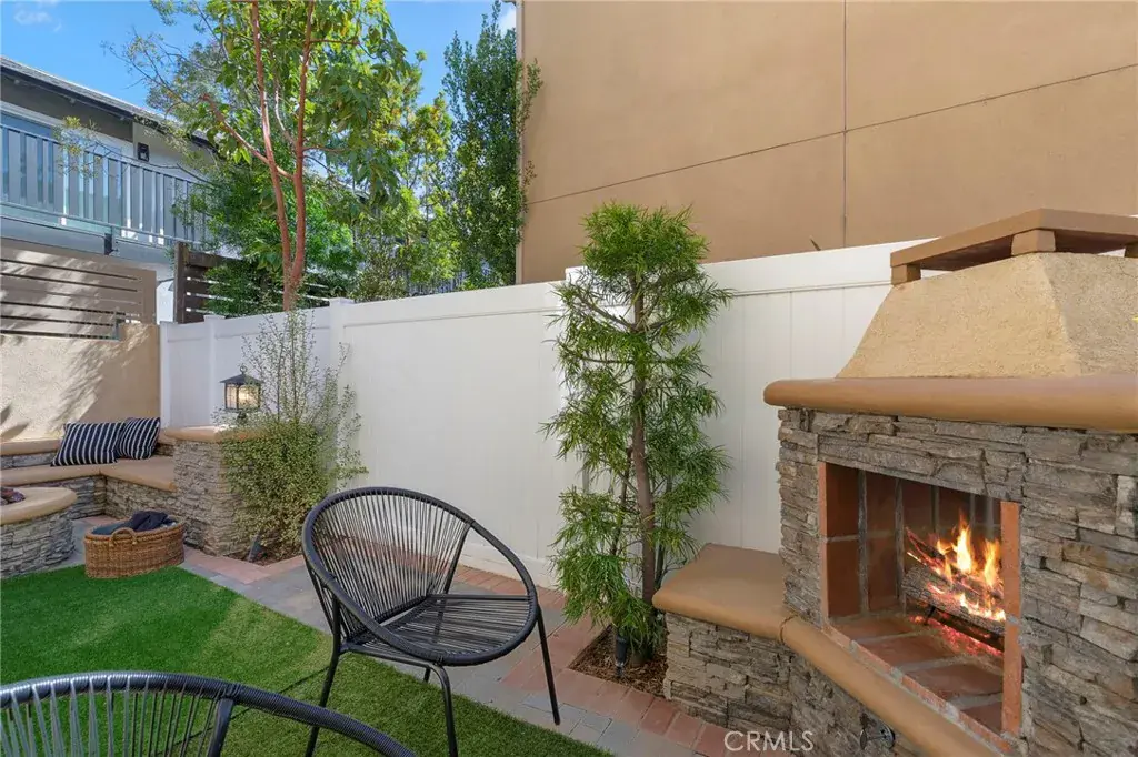 Outdoor Entertaining: The first level features a private, beautifully landscaped back patio with custom pavers and a cozy outdoor fireplace/fire pit, creating the perfect setting for relaxing or entertaining friends.