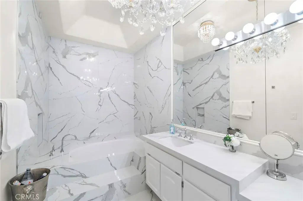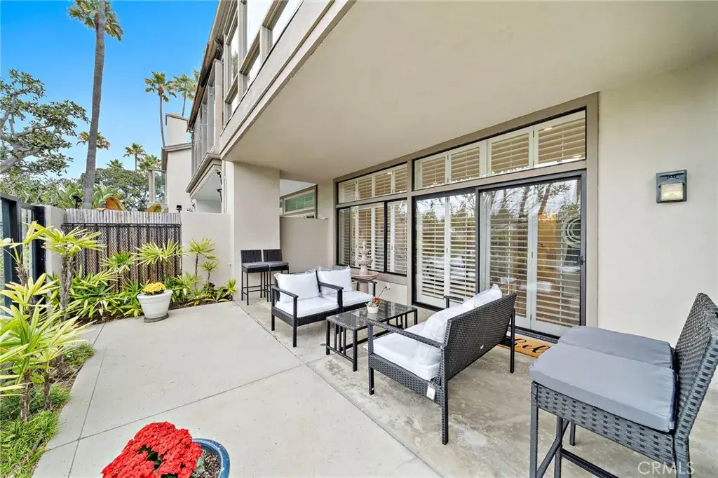 As you walk in from the direct garage access or from your large gated enclosed front patio and garden, you will notice 2 sets of double door entryways. One set of double doors is off the kitchen for easy access for entertaining alfresco . The second set of double Dutch doors is for the main entryway. As you walk into the front doors you will be greeted with a luxury home remodeled down to the studs with no expense spared boasting high ceilings , lots of sunlight and a breath taking large living room with a sit down wet bar and a large custom office to the left. The villa is decorated with imported crystal chandeliers from Italy and all new custom lighting throughout the entire home . This very light and bright retreat has a new large deck off the living room that overlooks the Hyatt Resort and back bay Newport Dunes. Located just cross the street you can enjoy a swim in the bay, stand up paddle, kayaking, boating and many different water sports the dunes has to offer just yards away.