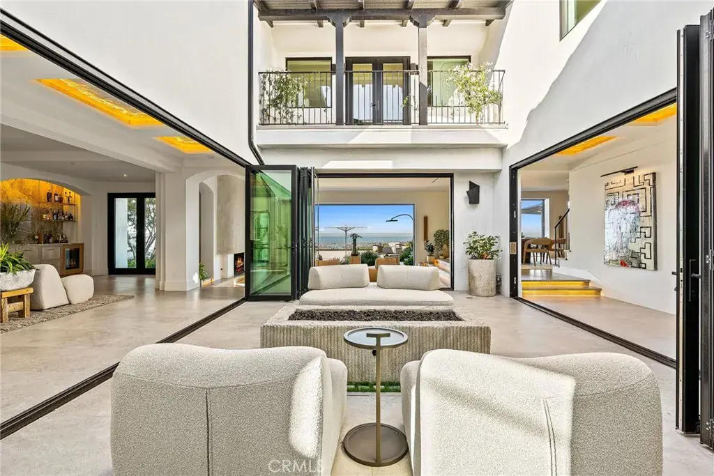 Positioned on one of the few true custom-home parcels in Spyglass Hill, 17 Muir Beach Circle occupies an elevated setting on the neighborhood’s most prized single-loaded hillside street. Of the approximately 346 residences within Spyglass Hill, only a select handful were originally offered as custom lots. Muir Beach Circle represents that rare tier. This parcel stands among the most advantaged — delivering true rear-yard living, meaningful distance from the street, and exceptional openness rarely found at this elevation. From its commanding vantage point, panoramic ocean and coastline views unfold by day, transitioning to harbor lights and a glittering city skyline by night — a perspective widely regarded among Newport Beach’s finest. Yet Fashion Island and Corona del Mar Village are minutes away. Rebuilt and comprehensively re-envisioned in 2025, the residence reflects a full-scale reinvestment into both aesthetics and infrastructure. Major systems — Heating and AC, plumbing, electrical, windows, doors, and life-safety integration — were modernized for contemporary luxury living. The primary show kitchen is anchored by dual professional AGA ranges and complemented by a fully equipped catering kitchen with Viking Pro appliances, Sub-Zero refrigeration, Wolf cooking, and multiple Miele dishwashers. Custom cabinetry with integrated power, Dornbracht and Kallista fixtures, bespoke brass detailing, and curated stone surfaces underscore a no-compromise approach to materiality. Walls of glass frame the horizon, supported by architectural Lutron lighting and Bang & Olufsen whole-home audio. Outdoor living is anchored by an elevated backyard with pool and water features, a private courtyard with fireplace, and terraces rebuilt in custom stone and imported cobblestone. A temperature-controlled 1,000-bottle wine cellar, concealed speakeasy-style bar and theatre lounge, intimate sitting room, and multiple indoor-outdoor entertaining environments complete the offering. Security and privacy are discreetly integrated with gated motor court entry and monitored systems. In this market, views, elevation, and irreplaceable land define enduring value. 17 Muir Beach Circle delivers all three — fully modernized and positioned to serve the next generation of ownership. For those seeking a seamless transition, select curated furnishings and artwork may be available outside of escrow.