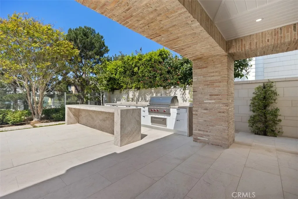 Experience refined coastal living in the exclusive enclave of One Ford Road. This beautifully appointed residence blends timeless sophistication with an effortless, open-concept layout designed for both elegant entertaining and everyday comfort. The formal living room transitions seamlessly into the dining area, gourmet kitchen, and inviting family room, all bathed in natural light. The main level showcases a warm and welcoming living space anchored by a gas fireplace, along with a dedicated home office featuring custom built-ins—ideal for today’s work-from-home lifestyle. A main-level guest suite provides both comfort and privacy for visitors. The interior opens seamlessly to a thoughtfully reimagined outdoor retreat, perfect for entertaining, complete with a gas fire pit and a fully equipped outdoor kitchen with built-in barbecue, beverage refrigerator, wine fridge, and custom bar. This highly desirable Stonybrook Model 3 offers five bedrooms in total. Upstairs, the primary suite serves as a private sanctuary, highlighted by a tranquil balcony ideal for enjoying the coastal air. The spa-inspired primary bath features a soaking tub, dual vanities, and a well-appointed walk-in closet. Three additional bedrooms complete the upper level, including a Jack-and-Jill configuration. Residents enjoy access to the exceptional amenities of One Ford Road, including a clubhouse, state-of-the-art fitness center, resort-style pools, and beautifully maintained grounds with parks, walking paths, and recreational courts. Ideally located near premier shopping at Fashion Island, renowned dining, and some of Southern California’s most iconic beaches, this home presents a rare opportunity to embrace elevated coastal living.