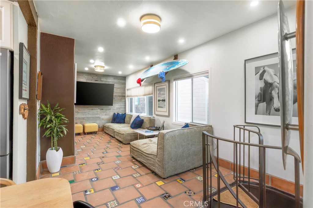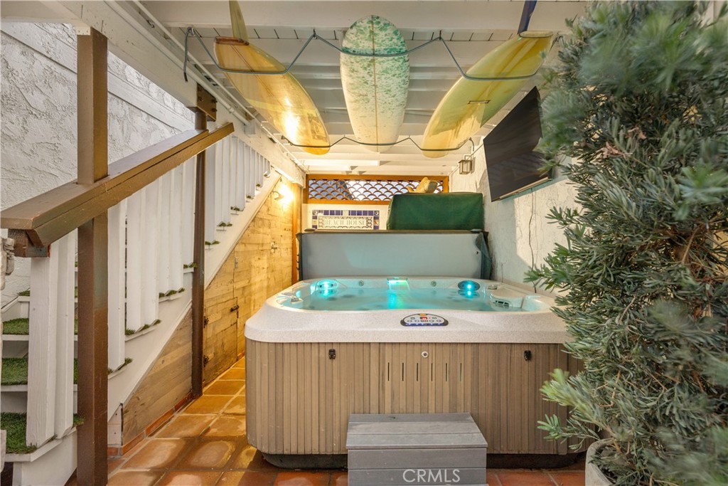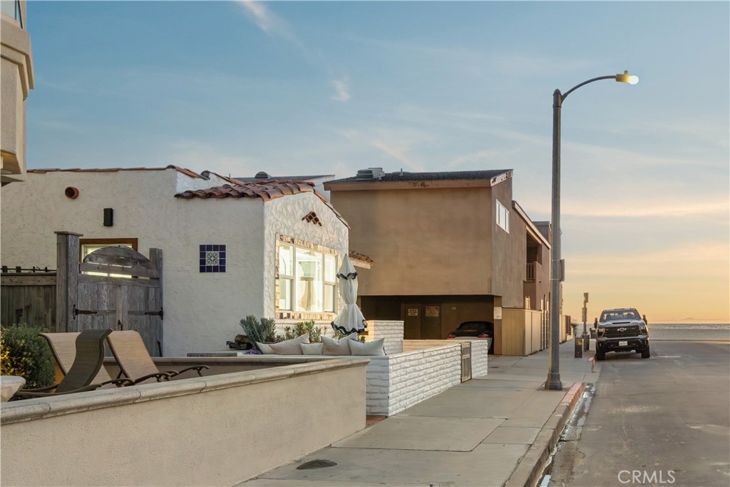 This premier duplex beachfront residence with active short term rental permits presents a rare opportunity to own a piece of coastal history, where timeless Spanish charm and original architectural elements have been thoughtfully updated for contemporary living. The front unit serves as an elegant vantage point for the Pacific, capturing sweeping ocean views from the living room and front bedroom, and featuring a scenic breakfast bar along with a private front patio with built-in seating. Equally sophisticated, the back unit offers generous proportions, a large eating area, and an expansive patio designed for effortless outdoor enjoyment. A central spiral staircase elegantly connects top-level living area with a primary suite to the two lower bedrooms and a shared bath, providing a modern flow that maintains a sense of privacy for all occupants. While just a row from the sand, this property does not lack in resort-style shared amenities, including a standalone sauna and a rejuvenating jacuzzi, alongside a finished garage that could easily function as an artist’s studio or a storage space. The property’s prime location puts it just steps from the boardwalk and the area’s grocery store. Complete with active short-term lodging permits, this residence represents a unique opportunity to experience the very best of coastal living in a home that is as functional as it is beautiful.