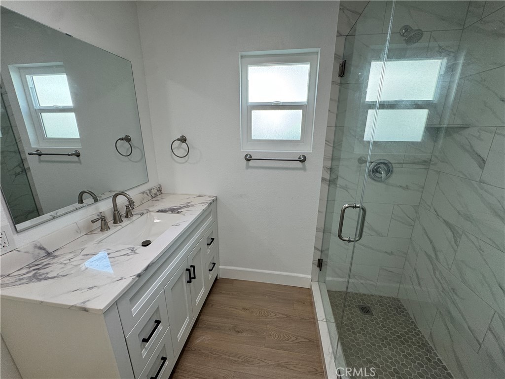 • Both bathrooms feature spa-inspired finishes with quartz vanities and modern tile walk-in showers