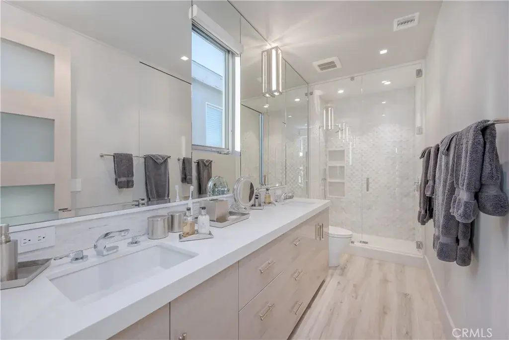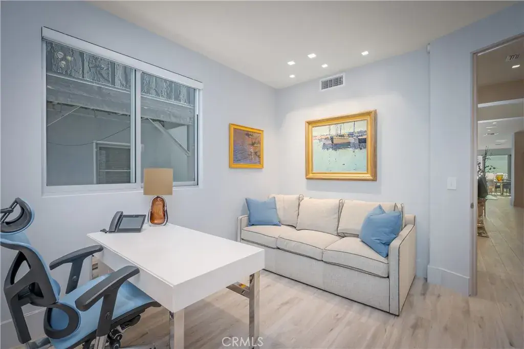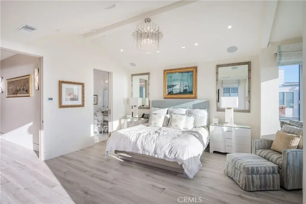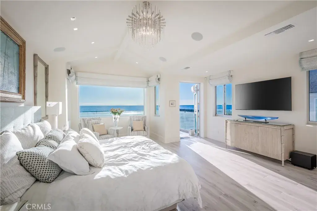 Experience refined coastal living in this semi-modern oceanfront masterpiece, ideally positioned near the end of the iconic boardwalk of Newport Beach. Remodeled and taken down to the studs in 2007, this exceptional residence blends soft contemporary design with thoughtful, high-end upgrades throughout. Offering 3 spacious bedrooms and 3 beautifully appointed baths, the home also includes a private office on the main level that can easily be converted into a 4th bedroom. Designed with convenience in mind, the property features a custom elevator. At the heart of the home is a gorgeous chef’s kitchen, designed to impress both visually and functionally. Showcasing a large center island with, stunning porcelain stoneware countertops, and high-end appliances. The first floor is raised approximately 3.5 feet above the boardwalk, creating one of the closest vantage points available to enjoy unobstructed views of the crashing waves. Full-width sliding glass doors open seamlessly to a large beachside front porch, perfect for soaking in the ocean breeze. From this elevated position, take in panoramic coastline views, glowing sunsets, and even Catalina Island. Upstairs, the primary suite faces straight out to commanding ocean views and opens to a private balcony overlooking the water. The spa-inspired primary bath is truly elaborate, featuring dual under-lit sinks, a spacious walk-in shower, a TV integrated within the mirror, and a custom-designed walk-in closet.