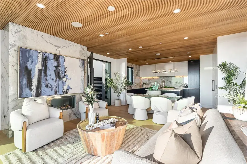 This newly completed residence blends architectural precision with the warmth of natural materials to create the ultimate modern beach home. Designed and built with exceptional craftsmanship, the open floor plan features wide-plank hardwood flooring, Western doors and windows, and a thermally modified Ayous wood ceiling that infuses organic texture and light. The chef’s kitchen pairs luxury and functionality with Wolf appliances, a Sub-Zero refrigerator, Newport Brass plumbing fixtures, and custom cabinetry crafted with solid wood doors and Blum hardware. Elegant Anne Sacks marble tile, porcelain slabs, and Restoration Hardware lighting elevate the interiors with timeless sophistication. Upstairs, the primary suite is a tranquil coastal retreat featuring a fluted Ayous accent wall, spa-inspired bath, and ocean breezes filtering through expansive windows. Additional details include solid-core TruStile doors with Emtek hardware, custom front and garage doors, and seamless indoor-outdoor flow ideal for beachside entertaining. Perfectly positioned along one of Newport’s most desirable stretches of sand, 5007 Seashore Drive captures the essence of new coastal luxury—refined, relaxed, and radiant with natural light.