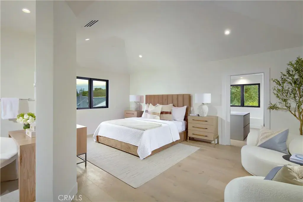 On a quiet interior street, where contemporary architecture meets coastal serenity, this virtually all-new home emerges from a full down-to-the-studs renovation completed in 2025. Thoughtfully redesigned with a modern coastal sensibility, the residence offers approximately 5,206 square feet of refined living on a generous 9,000 square foot lot in Dover Shores. Warm European-style wood floors, sculptural lines, and newly introduced architectural volume shape the interior experience from the moment you enter. A fully re-envisioned culinary space takes center stage with dual islands—one for prep, one for gathering—wrapped in elegant quartz surfaces. A Thermador six-burner range, Thermador microwave, two dishwashers, built-in refrigerator, and custom cabinetry elevate both function and style. Open sightlines connect the kitchen to the dining and great room spaces, creating an effortless flow ideal for hosting and daily living. Expansive indoor spaces open wide to a refreshed, ultra-private outdoor haven framed by mature hedging. A new outdoor kitchen, an enhanced saltwater pool, elevated spa, cascading water features, fire lounge, and multiple covered patios shape a resort-like environment that invites both relaxation and vibrant entertaining. Downstairs living includes two en-suite bedrooms, one with backyard access, and an inviting entry, all positioned with thoughtful intention. Upstairs, the primary suite unfolds as a serene escape, anchored by a thoughtfully modernized bath with dual sinks, a soaking tub, a generous walk-in shower, and a dedicated vanity area. Two walk-in closets and vaulted ceilings finish the space with comfort and ease. Two additional secondary bedrooms and layered designer finishes echo the home’s elevated character throughout. Dual HVAC, recessed lighting, and a spacious three-car garage add everyday practicality. Situated moments from 17th Street’s dining and shopping, Castaways Park, Newport Aquatic Center, Mariners Park & Library, and top-rated Mariner’s Elementary, the location captures Newport Beach living at its most balanced and convenient.