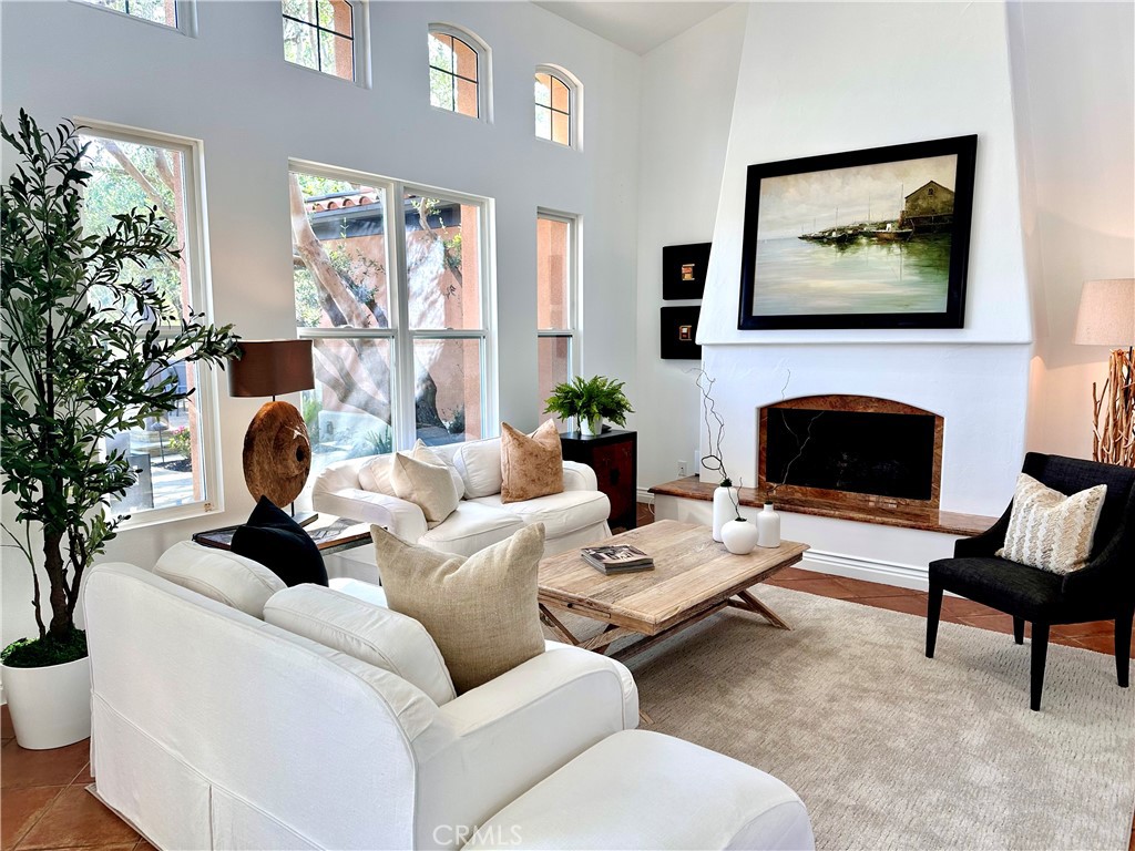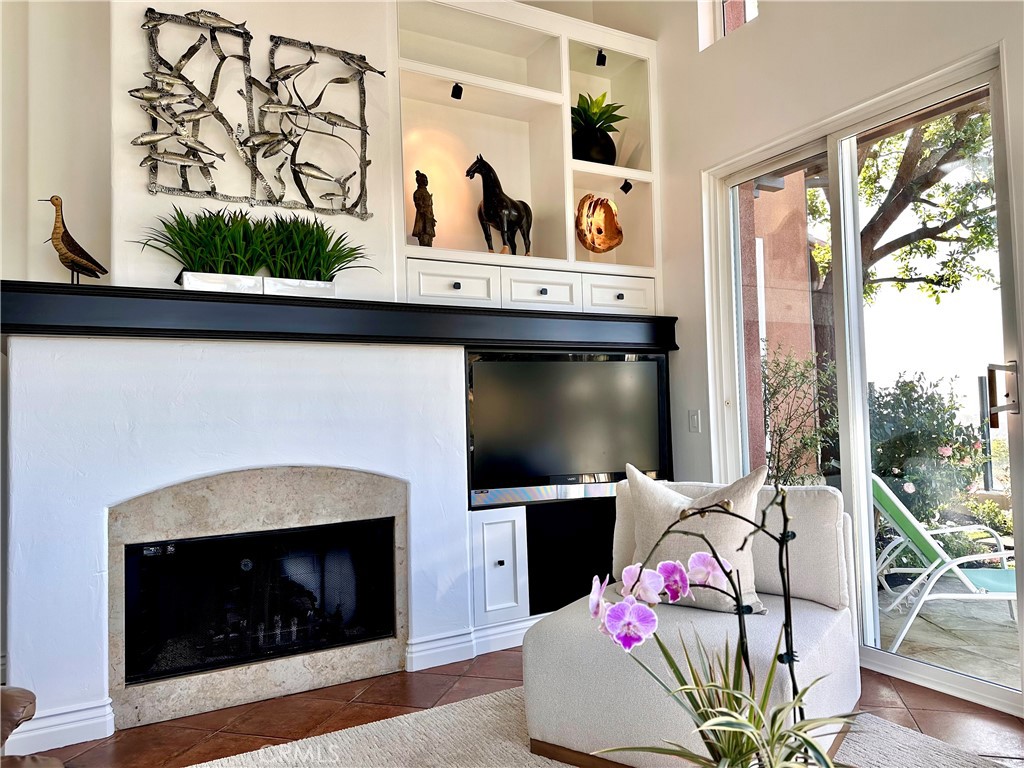 A private courtyard entry leads to an expansive great room with soaring ceilings and a statement fireplace. The chef’s kitchen features premium Viking and Sub-Zero appliances, custom cabinetry, and a center island—all oriented toward the views. An adjoining family room with a second fireplace creates a relaxed yet sophisticated living space.