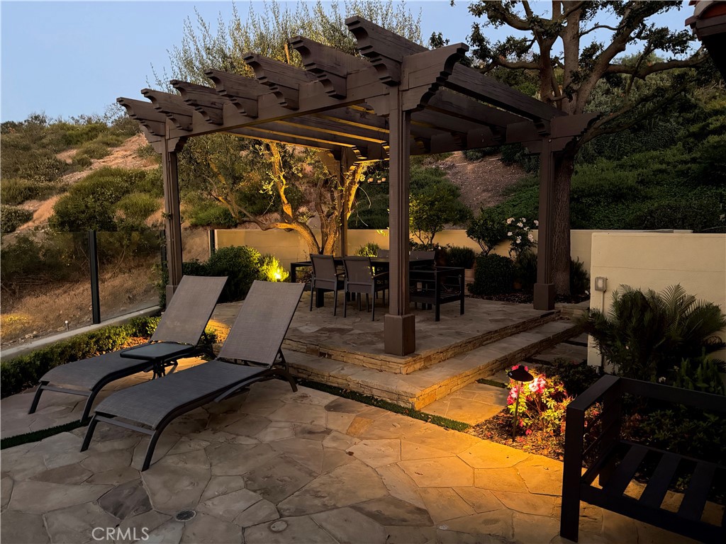 Outdoor living is exceptional, featuring three private patios; An expansive entertaining area with a pergola-covered raised dining area—perfect for sunset gatherings and quiet coastal mornings; A nice shaded area with big views at the family room; Quiet retreat patio at the Primary