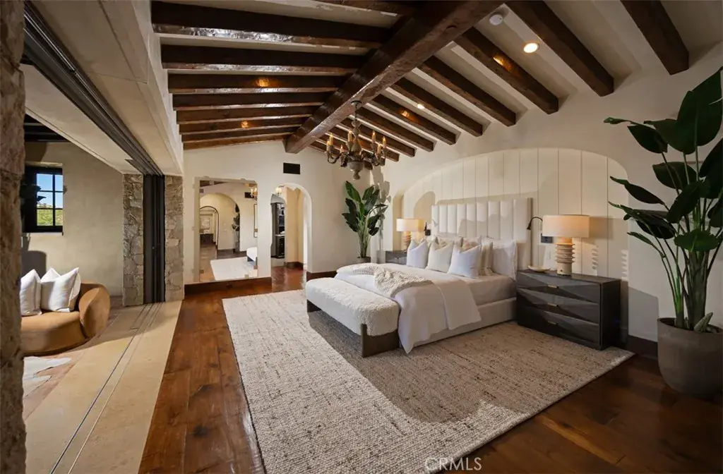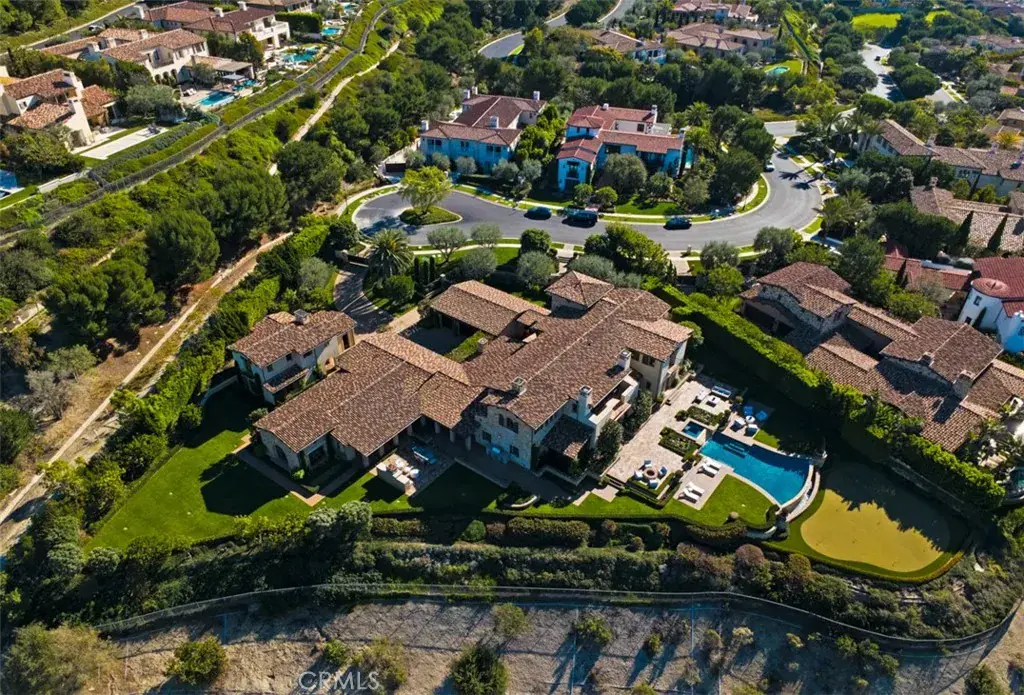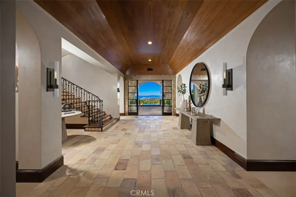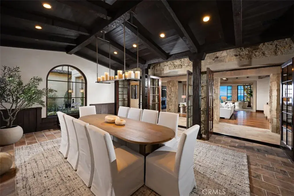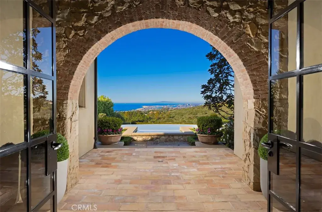 Discovered by invitation only, this Tuscan-inspired Farmhouse estate is a rare legacy property within the exclusive double guard-gated community of Crystal Cove. Set on one of the few coveted double lots in the entire enclave, the estate is situated entirely above grade, elevating sightlines and showcasing expansive ocean views throughout the residence. Constructed by PrideMark and set on over 1.10 acres, the estate unfolds as a true trophy property spanning over 12,000 square feet. Approximately 280 degrees of sweeping ocean views envelop the 10,464 square foot main residence and the 1,883 square foot detached guest house. Anchoring the estate’s exceptional indoor-outdoor lifestyle are four fireplaces—three indoors and one outdoors—along with a fire pit designed for intimate gatherings and elegant entertaining.