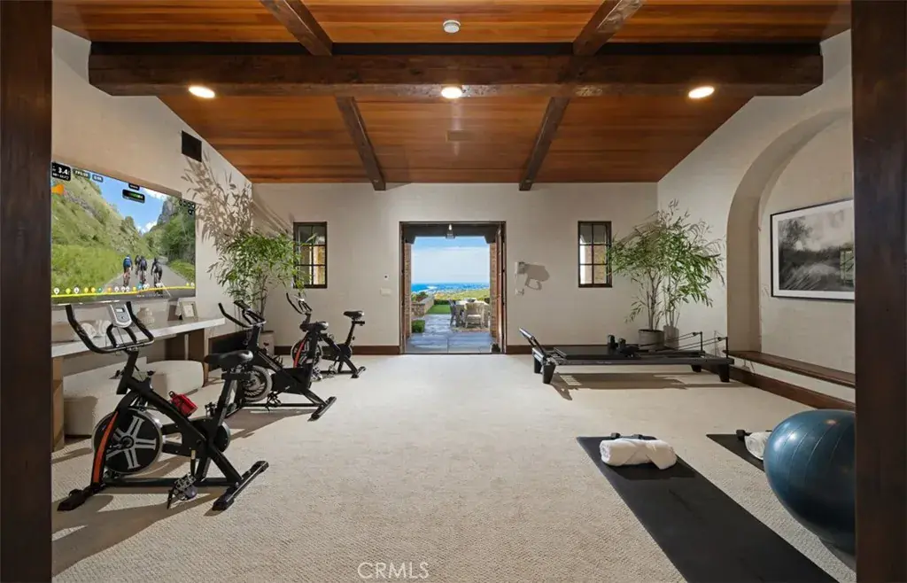 Main-level amenities include an elegant library, mud room, two ensuite bedrooms, two powder rooms, and a spacious laundry suite. The executive office is private and generously sized with commanding ocean, city light, harbor, and courtyard views. A separate gym/flex room with private entry adds versatility. In total, the estate offers six bedrooms and ten bathrooms, including five ensuite bedrooms in the main residence and a detached guest house with one bedroom and two bathrooms, plus an outdoor-access bathroom.