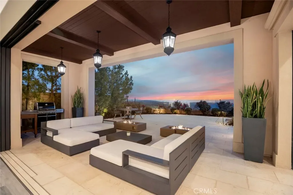 Offered furnished or unfurnished, the home captures unobstructed views of the Pacific Ocean and is ideally positioned at the end of a cul-de-sac overlooking thousands of acres of preserved canyons and rolling hillsides. Thoughtfully designed, it offers 5 bedrooms and 5.5 bathrooms, including a private-entry main-level suite ideal for guests, extended family, or live-in support.