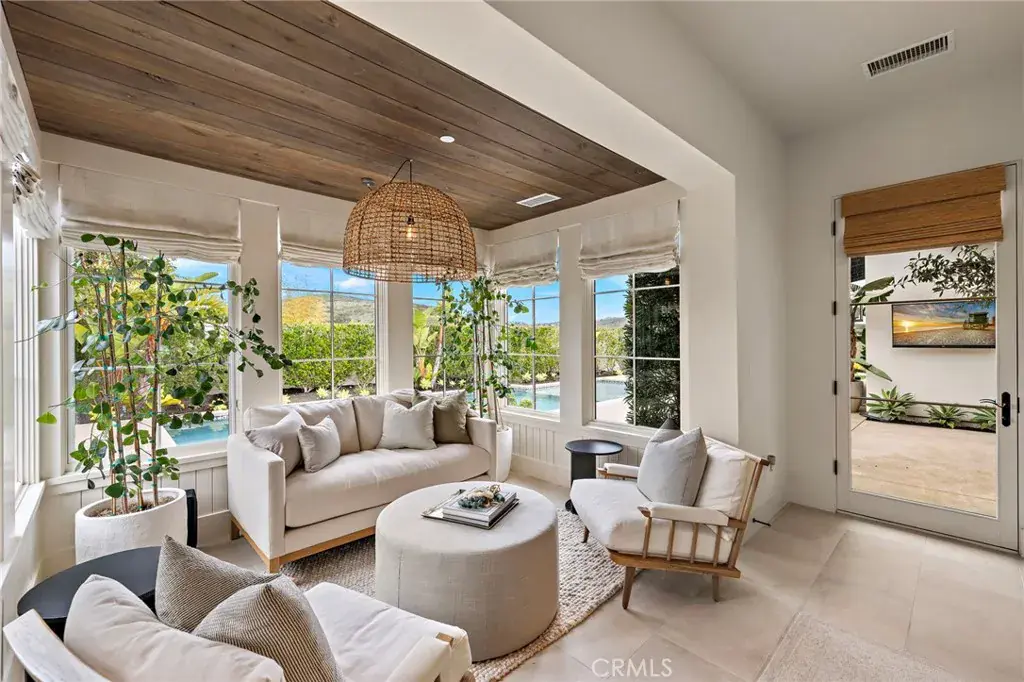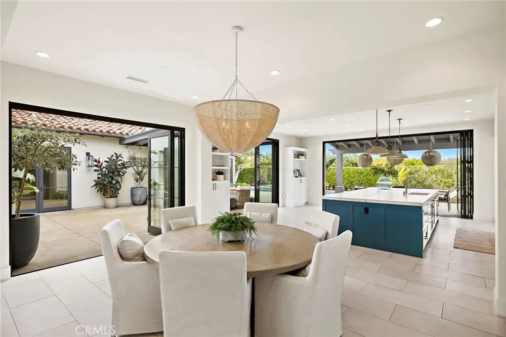 Located on a private cul-de-sac within the guard-gated enclave of Crystal Cove, 17 Water Port is a beautifully appointed coastal residence offering approximately 4,653 square feet of refined living on a sprawling 17,678 square foot corner homesite. The premier setting provides exceptional privacy along with picturesque canyon and ocean views. The home offers four generously sized ensuite bedrooms, including a primary suite and an additional main-level ensuite ideal for guests or multigenerational living, with two private suites upstairs. Designed for seamless indoor-outdoor living, floor-to-ceiling retractable bifold doors open the great room and kitchen to expansive outdoor entertaining spaces. The recently reimagined chef’s kitchen anchors the home with an oversized island clad in Glorious White honed marble, professional-grade Sub-Zero, Wolf, and Bosch appliances, custom cabinetry, and premium finishes. Entertaining is enhanced by dual Sub-Zero wine refrigerators, soaring wood-beamed ceilings, stone and hardwood flooring, and a fully integrated Savant home automation system with SONOS surround sound. The grounds are thoughtfully designed for both entertaining and everyday enjoyment, featuring a PebbleTec pool, expansive patios, covered loggias, manicured lawns, and a private putting green, all set within a tranquil coastal backdrop. Located within one of Newport Coast’s most prestigious communities, residents enjoy world-class security, proximity to pristine beaches, upscale shopping and dining, and miles of scenic coastal trails.