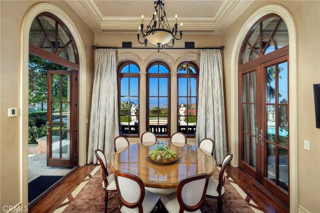 Perched at the highest elevation in the prestigious, guard-gated enclave of Pelican Crest, this custom estate captures breathtaking, unobstructed views of Newport Harbor, Catalina Island, year-round sunsets, and the coastline stretching to Palos Verdes. Set behind private gates and a serene entry courtyard with fountains and water features, the residence showcases timeless architecture and meticulous craftsmanship.