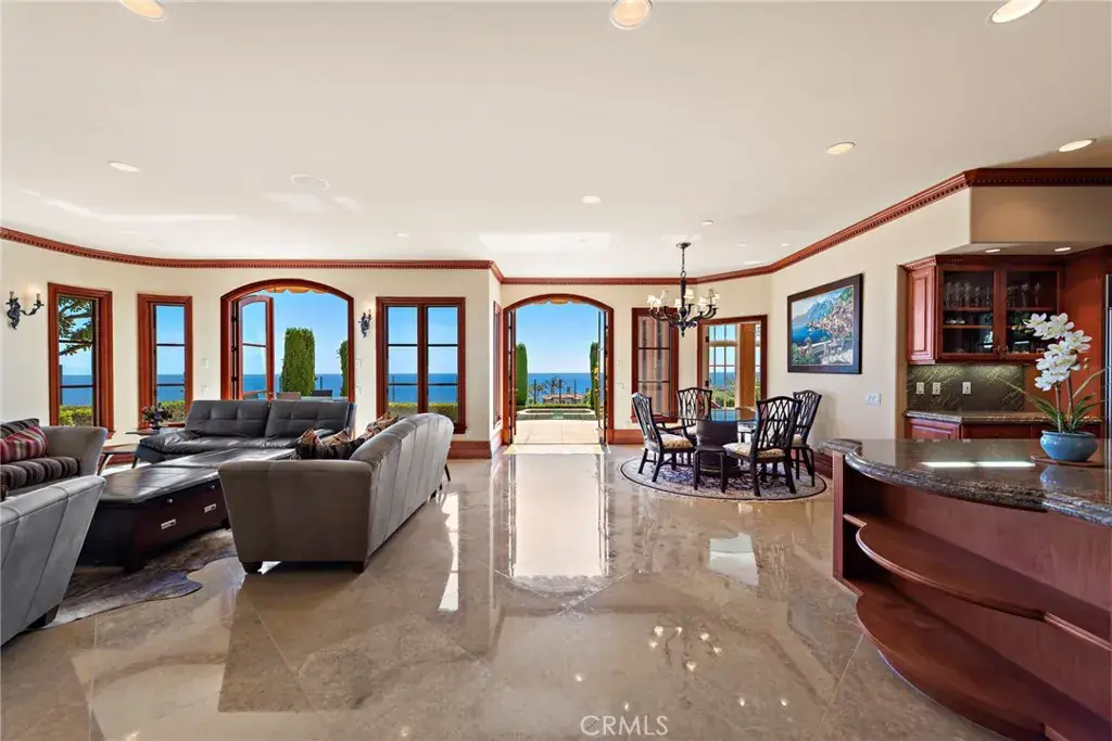 A true trophy location, this custom estate crowns on a premier wraparound lot at the end of a private cul-de-sac in the ultra-exclusive community of Pelican Crest. Perched atop a coastal hill, the residence enjoys commanding, unobstructed ocean views. From sunrise to sunset, immerse yourself in panoramic ocean views stretching from Catalina Island to Newport Harbor and across the glittering skyline, one breathtaking canvas. It opens a world of possibilities that spans all the way to pristine golf greens. The breathtaking shoreline views with year round sunsets and Catalina rest in the back drop. Every inch of this architect-driven, open-concept home has been carefully curated with structure and entertainment in mind. Radiating an encapsulates luxury living at every turn. This meticulously custom built home offering a rare and inviting opportunity intentional, intimate environment where nature’s beauty converges with architectural artistry, manifesting as the ultimate sanctuary for harmonious living. Everything fusions with the fresh ocean breeze. The living room draws friends and family together, complete with custom built-ins, and an open floor plan that seamlessly connects indoor and outdoor areas which is perfect for entertaining. Outdoor pool is not only hosting stylish celebrations and delighting esteemed guests, but also for peaceful, present living in a serene and sunset-drenched environment. The upper level is accessed by a dramatic staircase, or by elevator. Jaw-dropping ocean views are found in most bedroom suites. The elegant master suite has its own getaway with a spacious living quarter, featuring ocean views. Down the hall, three additional bedrooms with en-suite bathrooms complete the upper level, ensuring ample space. The fourth car garage is intended for storage, golf cart or small car. This enchanting palatial estate offers complete tranquility, and is the pinnacle of Southern California coastal living that is built to elevate your lifestyle. Must be experienced to truly appreciate its pristine and unparalleled beauty. Welcome to this a once-in-a-lifetime opportunity.