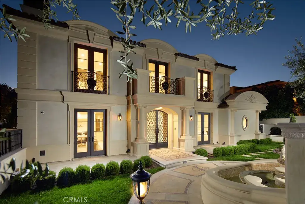 Exquisitely reimagined in 2025, this French palatial manor pairs timeless European elegance with fresh, modern sophistication. Set on a 13,155± sq. ft. parcel in the prestigious guard-gated enclave of Pelican Crest, the 8,367± sq. ft. residence commands sweeping views of the Pacific Ocean, Catalina Island, Newport Harbor, and the famed Pelican Hill Golf Course. Behind its stately façade, every detail has been elevated with the finest materials and craftsmanship: natural limestone and white oak herringbone floors, hand-brushed Venetian plaster, Moka Creme honed stone in all wet areas, and bespoke solid brass hardware in oil-rubbed bronze or polished nickel. The two-story foyer with antique chandelier leads to a grand staircase, gracious formal living and dining rooms with custom fireplaces, a richly appointed wood-paneled library, and a sun-filled family room with fireplace that adjoins the gourmet kitchen. A culinary showpiece, the kitchen featuring Calacatta Vagli marble surfaces, custom cabinetry, dual refrigerators, professional-grade appliance, and a built-in upholstered ocean-view banquette with custom breakfast table. The opulent primary suite offers a fireplace, spa-inspired bath with an ocean-view soaking tub, architectural glass-block accents for natural light, and a custom-designed closet. Additional amenities include five secondary suites, a tiered theater room, activity/fitness spaces, sauna, steam room, and a subterranean 7-car garage. Additional upgrades include a new roof, new HVAC system, all new plumbing connectors and two new water heaters. Outdoors, new stucco and roofing frame lush entertaining areas with a saltwater pool/spa and BBQ/kitchen with natural stone countertops — all set against a backdrop of endless coastal beauty. This is Newport Coast living at its most refined — where architectural artistry meets modern luxury in a rare, view-rich estate.