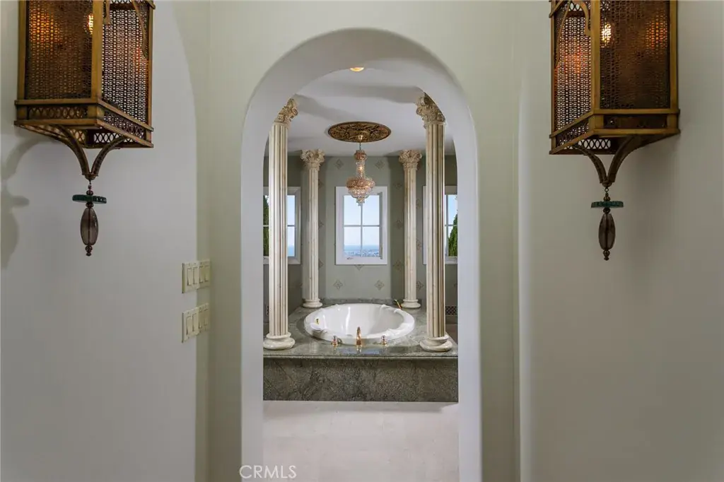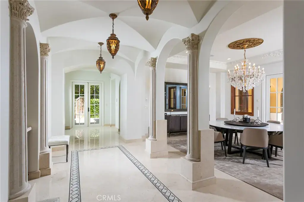 Enjoy elegant five-star living at this opulent ocean-view residence located in the esteemed gated community of Pelican Crest. Set on a cul-de-sac of four estates, the residence is supremely private and offers exceptional grounds including a private entry courtyard, manicured gardens with three fountains, and an entertainer’s backyard with saltwater pool and spa, barbecue, grassy areas, and an expansive patio ideal for al fresco dining or to enjoy views of the coastline, harbor, city lights, golf course, Palos Verdes, and Catalina Island. Thoughtfully designed and meticulously maintained, the sumptuous villa is comprised of eight bedrooms and ten bathrooms including three lower level bedroom suites and an exquisite master suite with soaring ceilings and awe-inspiring views. The finest artisan finishes are evident through the residence, such as sweeping dual staircases with iron railings, carved limestone fireplaces, intricately detailed moldings and millwork, stunning lanterns, and crystal chandeliers. The dreamy chef’s kitchen is fully equipped with stainless steel appliances, oversized kitchen island, and opens to a breakfast room looking out at the pool. Formal and casual common areas offer an abundance of space; while a library or office, home theater, fitness room, wine room, elevator, and a 10-car garage deliver every desired amenity. With nearly every room enjoying access to a loggia or terrace, this exceptional residence effortlessly indulges in the Southern California lifestyle.