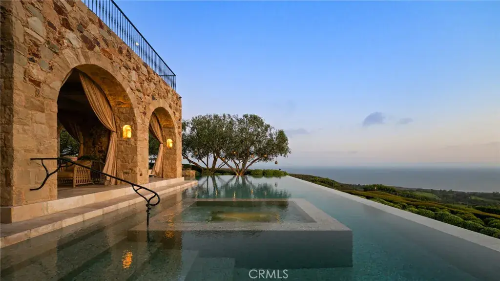 Positioned within the ultra-exclusive, guard-gated enclave of Pelican Crest, this unparalleled legacy estate once featured in Architectural Digest is a rare offering of architectural significance, timeless design, and world-class craftsmanship. Conceived by internationally renowned architect Richard Landry, with interiors curated by celebrated designer Craig Wright, and brought to life by esteemed builder John Fenton, this residence sets a new standard for coastal luxury. Encompassing approximately 13,206 square feet on an ultra-premier ~half-acre lot, this landmark estate captures unobstructed panoramic views stretching across the Pacific Ocean, Catalina Island, Newport Harbor, Pelican Hill Golf Course, and the exceptional city lights along the California coastline. Among the finest parcels ever to come to market, this estate offers an unmatched sense of place and exclusivity. Evoking the ambiance of a secluded Tuscan villa, the grounds are richly adorned by lush landscaping, tranquil pathways, and mature olive and melaleuca trees, all enhanced by atmospheric lighting and expansive entertainment terraces. A serene entry koi pond, detached guest house, and a 16th-century Venetian fountain enrich the sense of quiet opulence. Inside, the home reveals six bedrooms, six full baths, and three powder rooms, with soaring ceilings, grand-scale living areas, and seamless indoor-outdoor flow. The private lower level offers an immersive experience like no other: a vintage-inspired theater with hand-painted ceiling murals, crystal lighting, a speakeasy bar with glass walls peering into the pool, a temperature-controlled wine cellar, full gym, massage room, steam shower, and lounge areas that echo the mood of an elite members-only club. Anchoring the estate is a multi-level, infinity-edge pool clad in bespoke Italian glass mosaics, a true centerpiece. A covered loggia offers an open-air living room with breathtaking coastal views, ideal for year-round enjoyment. Created for grand-scale entertaining and intimate everyday living alike, this estate is the crown jewel of Newport Coast destined for the most discerning buyer. With immediate access to Pelican Hill Golf Course & Resort, world-class shopping, award-winning schools, and the finest of coastal Southern California living, this is more than a residence, it’s a once in a lifetime legacy offering.