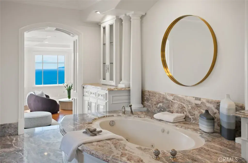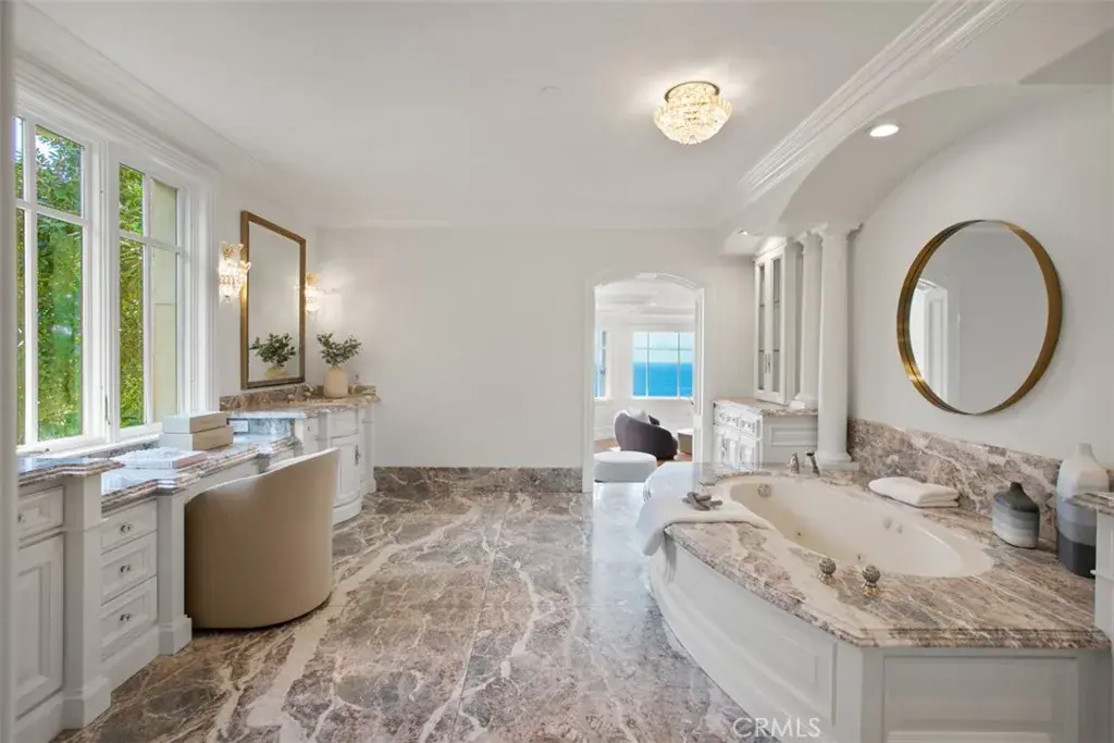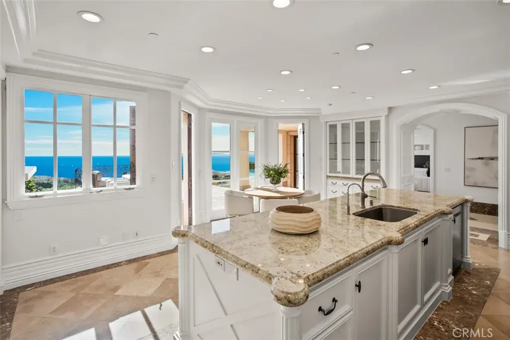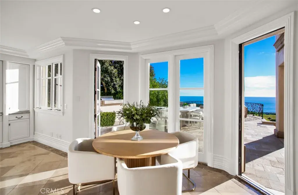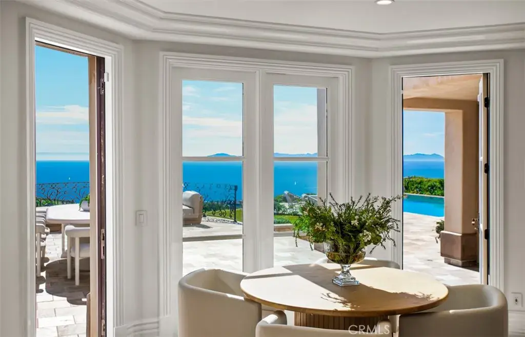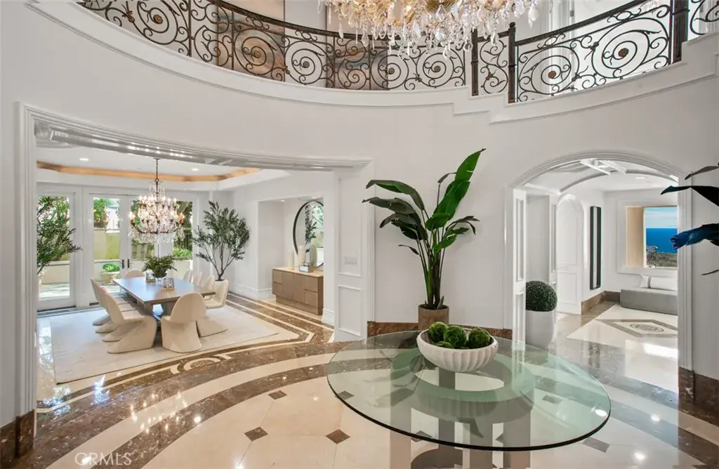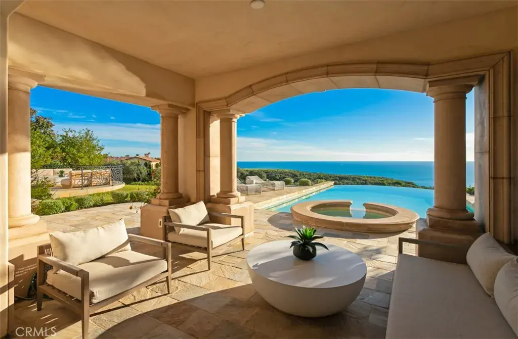 Spanning approximately 8,900 square feet, the residence features six bedrooms, eight bathrooms, and a six-car subterranean garage—ideal for collectors or those seeking secure, ample storage. A dramatic domed foyer introduces thoughtfully proportioned interiors, including a richly appointed library, formal living and dining rooms with custom millwork, and a main-level guest suite with its own bath. Designed for both comfortable daily living and elevated entertaining, the family room opens seamlessly to outdoor terraces, welcoming ocean breezes and panoramic views. The kitchen is finished with premium appliances, substantial stone surfaces, an oversized island, and a casual dining area—all oriented toward the coastline. Upstairs, four bedroom suites provide privacy and comfort, three of which capture sweeping ocean views. The primary suite offers a refined retreat with a private balcony, fireplace sitting area, expansive custom closet, and a marble-clad bath with soaking tub and dual vanities. A secondary staircase leads to the lower level, where a climate-controlled wine room and additional guest quarters offer flexibility for extended stays. Residents enjoy access to the Newport Coast Clubhouse amenities and close proximity to The Resort at Pelican Hill, Fashion Island, and the beaches of Newport Beach and Laguna Beach, with convenient access to major freeways and toll roads.