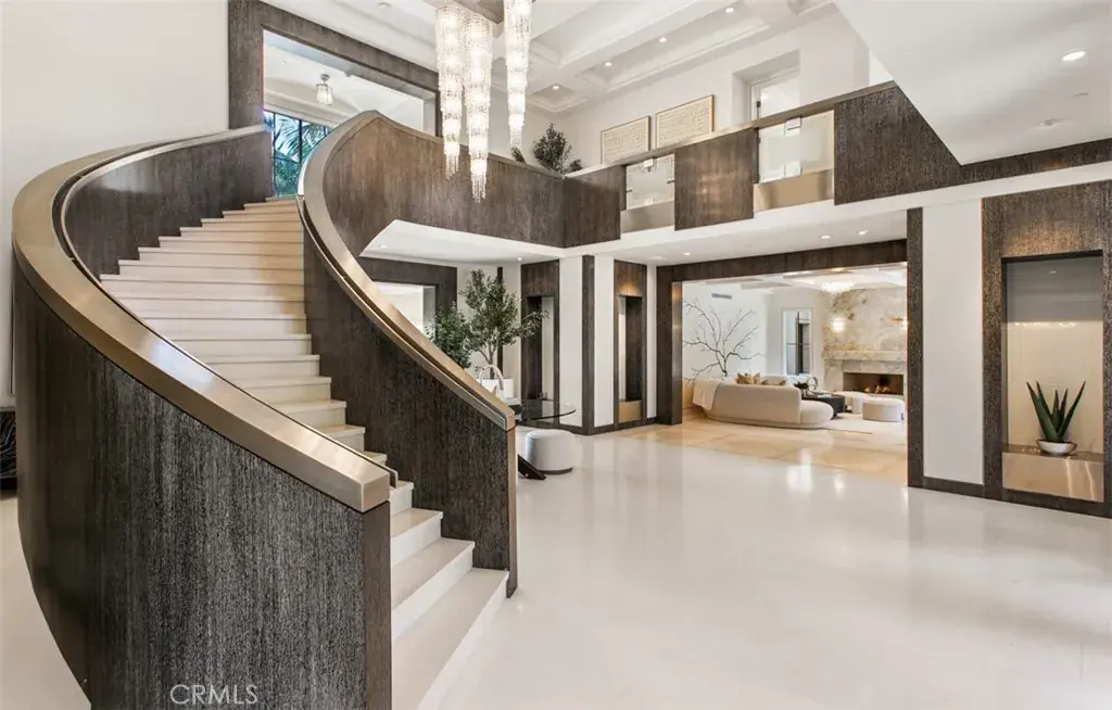 Situated within the prestigious guard-gated community of Pelican Crest, this remarkable custom estate offers approximately 10,310 square feet of refined modern European living, seamlessly blending timeless architecture with contemporary sophistication. Beyond the grand double glass-and-iron entry doors, a dramatic two-story foyer with a sweeping floating staircase and French limestone flooring sets the tone for the home’s exceptional transitional design. Light-filled formal and casual spaces flow effortlessly, including a formal dining room with access to the grounds and a gourmet chef’s kitchen appointed with Viking and Miele appliances, custom cabinetry, and elegant stone surfaces. The great room, anchored by a striking onyx fireplace and sophisticated wet bar, opens through three sets of French doors to the resort-like backyard, creating a natural extension of indoor and outdoor living.