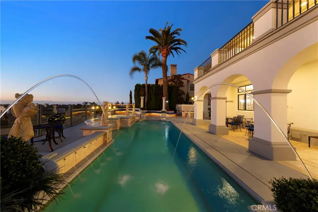 Nestled within one of Newport Coast’s most prestigious and sought-after enclaves, this exceptional estate—originally built as the community’s model home—commands a premier cul-de-sac location with breathtaking 270-degree panoramic views spanning the Pacific Ocean, Catalina Island, city lights, mountains, and rolling valleys. Designed for both elegance and comfort, the residence offers five expansive bedrooms, including a highly desirable main-level suite, ideal for guests or multi-generational living. The home has been extensively upgraded throughout, blending timeless architectural grandeur with refined modern luxury. Interiors showcase soaring two-story ceilings, expansive windows, updated contemporary finishes, new designer rugs, custom drapery, and a completely remodeled collection of spa-inspired bathrooms. The gourmet kitchen has been elevated with top-of-the-line Viking professional appliances, premium countertops, and thoughtful enhancements that cater to both everyday living and sophisticated entertaining. Additional upgrades include dual new air-conditioning systems and a high-end, whole-house water softening and filtration system designed to deliver exceptional water quality throughout the residence. Outdoors, the resort-style backyard offers an inviting pool and spa, built-in BBQ, wet bar, fire pit lounge areas, and newly customized outdoor furnishings, all perfectly positioned to capture coastal breezes and unobstructed views. Private, serene, and impeccably maintained, this estate is moments from Newport Coast’s most iconic beaches, world-class shopping, dining, golf, and coastal amenities. Offered as a turn-key luxury lease, this home presents a rare opportunity to experience an elevated coastal lifestyle in one of Southern California’s most exclusive neighborhoods, which is sure to please.