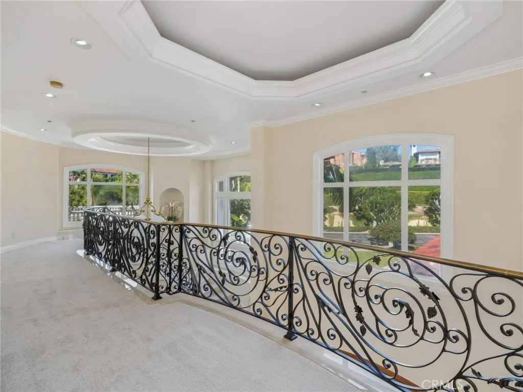Set along the 12th fairway of Pelican Hill Golf Course, the home enjoys serene golf course and ocean views. The spacious floor plan features a luxurious primary suite, adjacent upstairs bedroom and another main floor bedroom. Each bedroom enjoys ensuite bathrooms in addition to two main level powder baths.