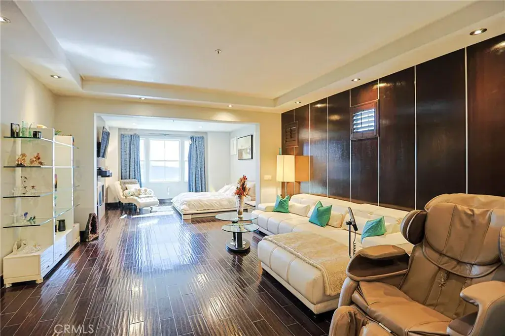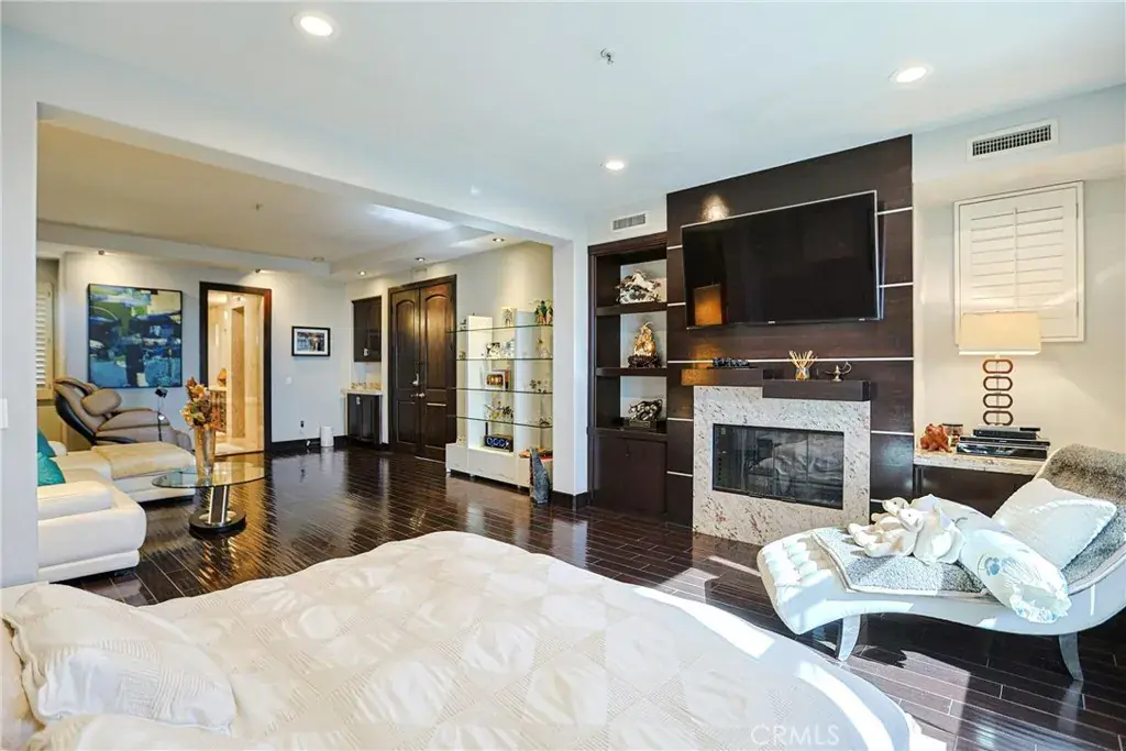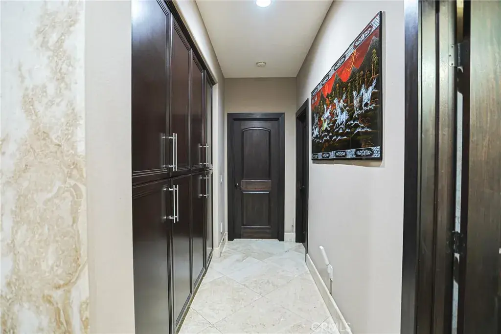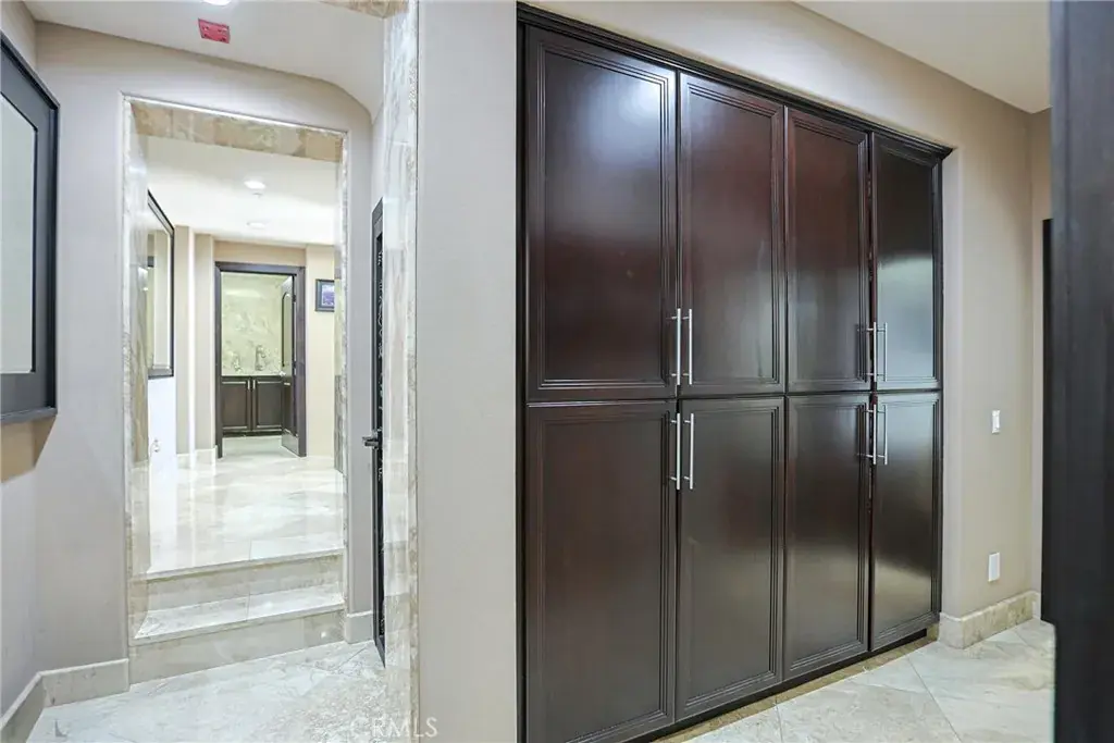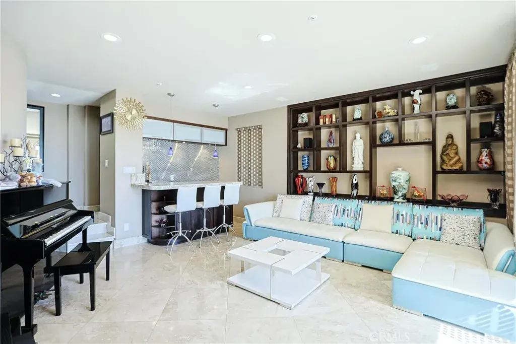 Spanning approximately 3,864 sq. ft., the largest floor plan in the community, the residence features 3 bedrooms and 3.5 bathrooms designed for refined living and effortless entertaining. Elegant interiors showcase a dramatic Laos redwood staircase, marble flooring with marble baseboards, wood floors, recessed lighting, and custom designer finishes throughout. The gourmet kitchen is appointed with marble countertops, rich dark cabinetry, a center island, and top-of-the-line Viking stainless steel appliances, opening to a light-filled great room with sweeping views of Crystal Cove and the Pacific Ocean.