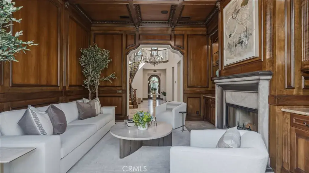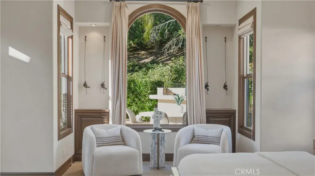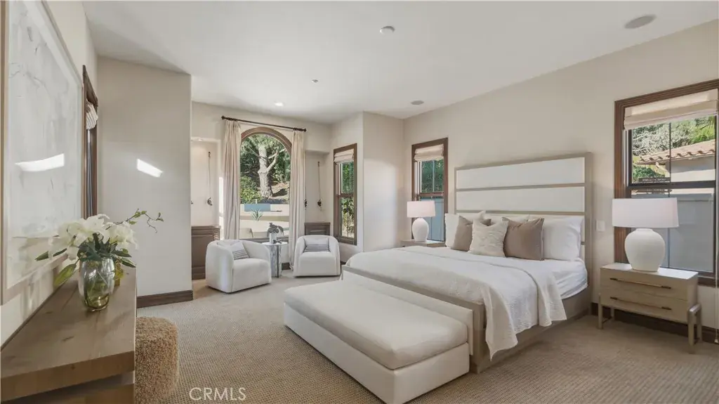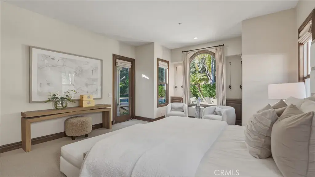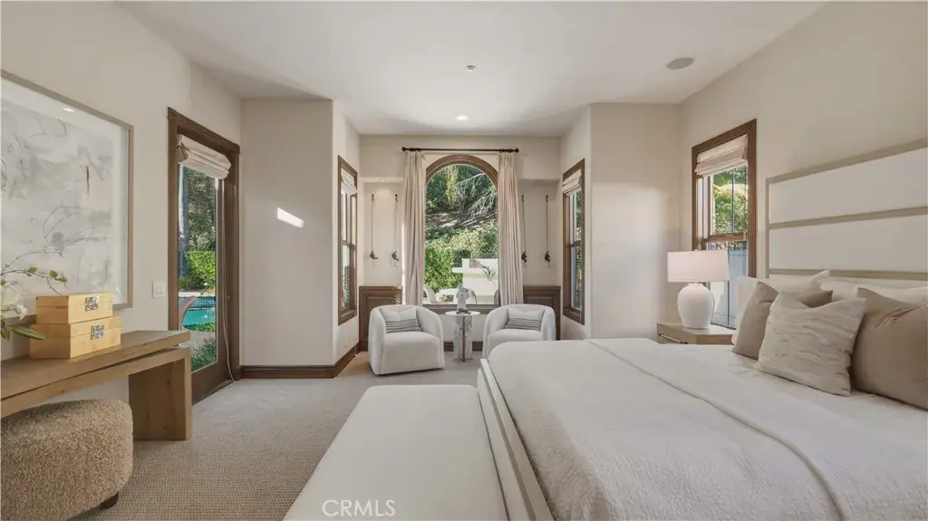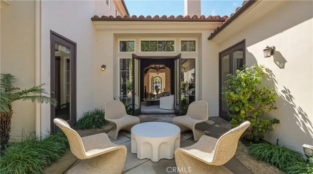 Set within the prestigious guard-gated Coastal Canyon enclave of Sausalito, this thoughtfully upgraded residence is ideally positioned at the end of a quiet cul-de-sac, offering enhanced privacy and a peaceful setting surrounded by open green spaces. The expansive, light-filled floor plan features four generously sized bedrooms, four full bathrooms, powder room, dedicated office, and a spacious bonus room. Designed for seamless indoor-outdoor living, the main living areas open to multiple entertaining patios, a custom built-in bar and barbecue area, and a private resort-style pool and spa—creating an inviting environment for both everyday living and gatherings. An upper-level deck provides tranquil ocean views and additional outdoor space to relax and unwind. Interior upgrades include travertine flooring throughout much of the main level, new carpet, custom crown moldings, extensive woodwork, and fresh interior paint throughout. The gourmet kitchen is appointed with Viking and Sub-Zero appliances, granite countertops, ample cabinetry, and opens directly to a spacious great room ideal for entertaining and casual living. The home is complete with a main-level primary suite and a secondary guest bedroom, offering exceptional convenience and flexibility for guests or multi-generational living. The property offers both tranquility and convenience, just moments from premier shopping, world-class dining, and Southern California’s finest beaches.