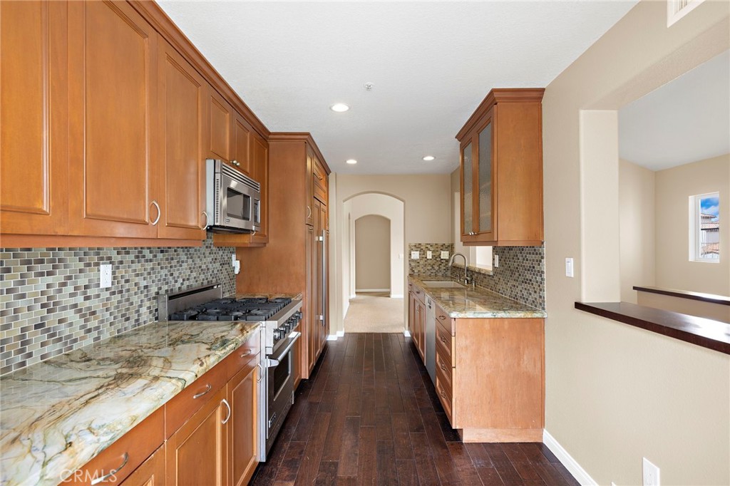 This sophisticated two-bedroom, two bath townhome is located within the famed Newport Coast Trovare gated community. The residence sits on the corner lot of Tivoli Ct, providing amazing views from all levels that overlook a private park. The condo opens to a beautifully done dark hardwood stairwell with a one of a kind custom iron railing sourced from Mexico. Custom natural slate tile in the kitchen, coupled with unique granite counter tops, and top of the line Viking stainless steel appliances create amazing personalized character. The interior space gives off a luxury feeling with natural lighting from all areas of the home, spacious living room with a very large gas fireplace. Towering vaulted ceilings in the master suite, opens to a unique master bathroom, with luxurious double vanity sink and sky-lit walk in shower. Residents of Trovare neighborhood enjoy resort style living with two community pools, featuring an Olympic sized salt-water pool, clubhouse, spa, tennis and basketball courts. Located just minutes from the beach, prestigious international golf courses, fine dining, Fashion Island shopping mall, and famously known Newport Beach nightlife allows for endless entertainment. Newport Coast is conveniently located very close to the 73, 55, and 405/5 freeway junctions, less than 15 minutes from John Wayne Airport. 3 Tivoli boasts a lot of amazing amenities for any professional looking to elevate their living situatio