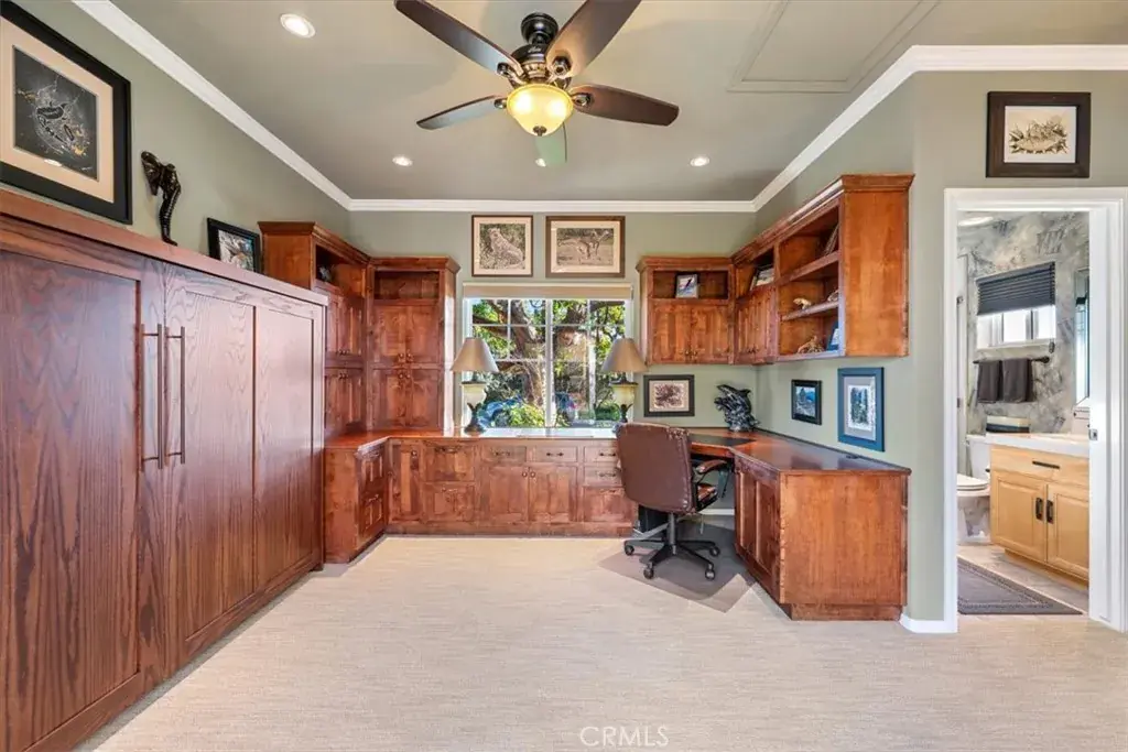 Elegant electric window shades, custom window coverings, and hand-painted accent walls add a true “wow” factor throughout the home. Both front and rear yards are meticulously maintained with easy-care, drought-resistant landscaping for water-wise living.