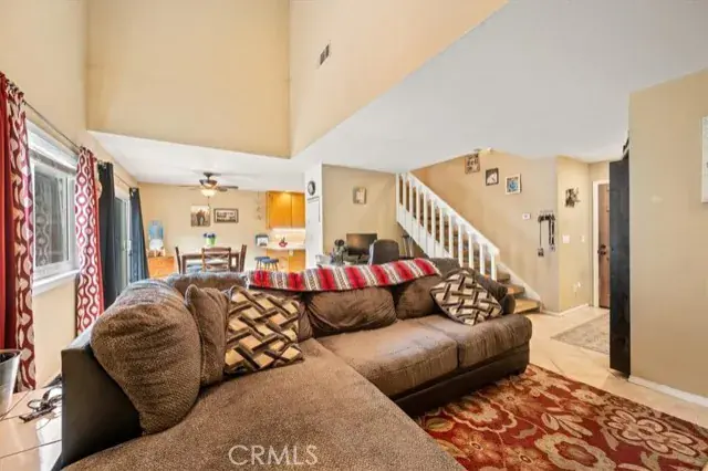 Step inside to soaring vaulted ceilings and a bright, open layout. The gas fireplace in the living room creates a cozy space to unwind, while the open kitchen features breakfast-bar seating, a pantry, and plenty of room for cooking and entertaining.