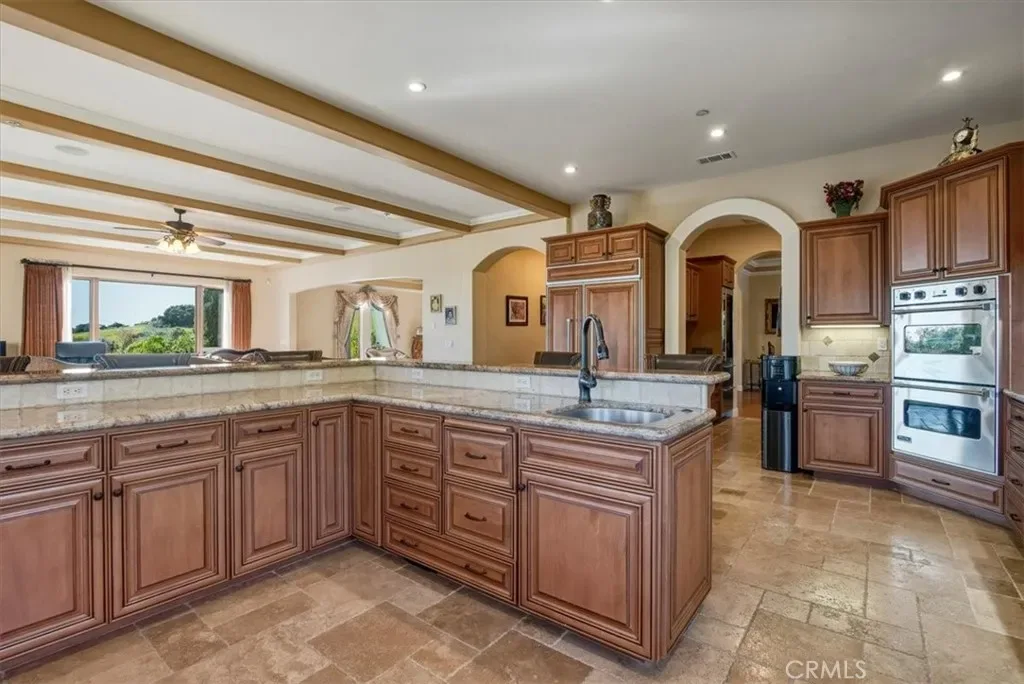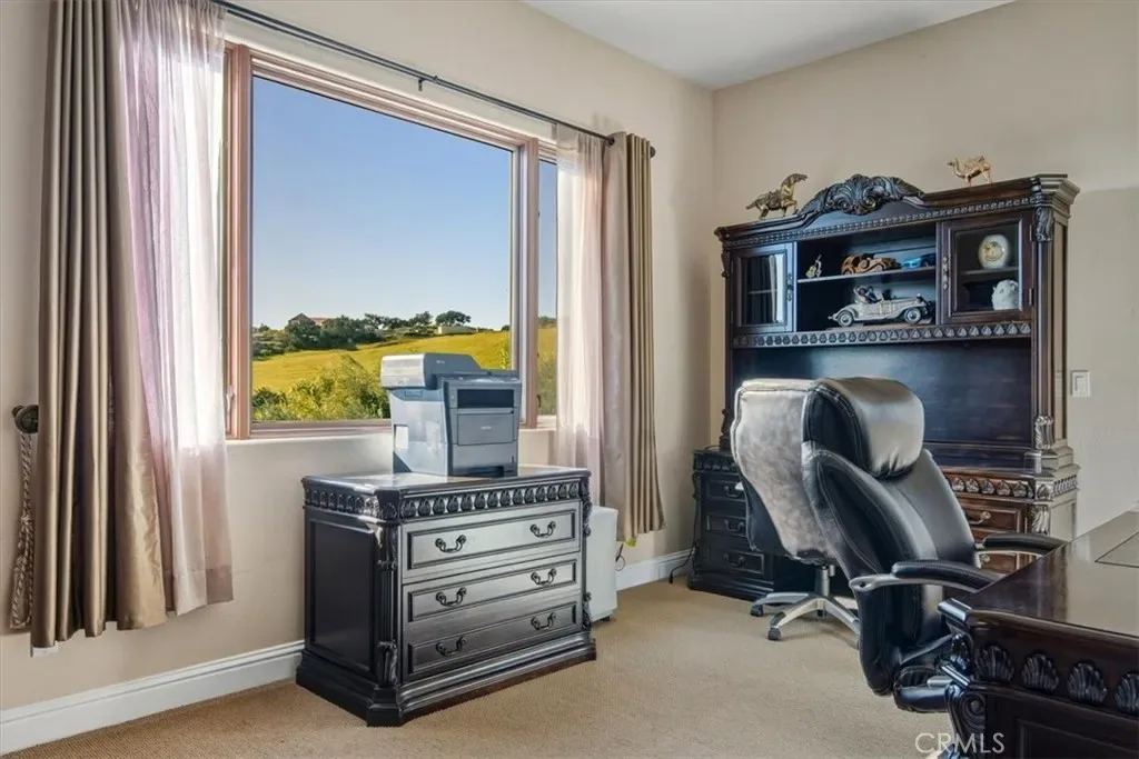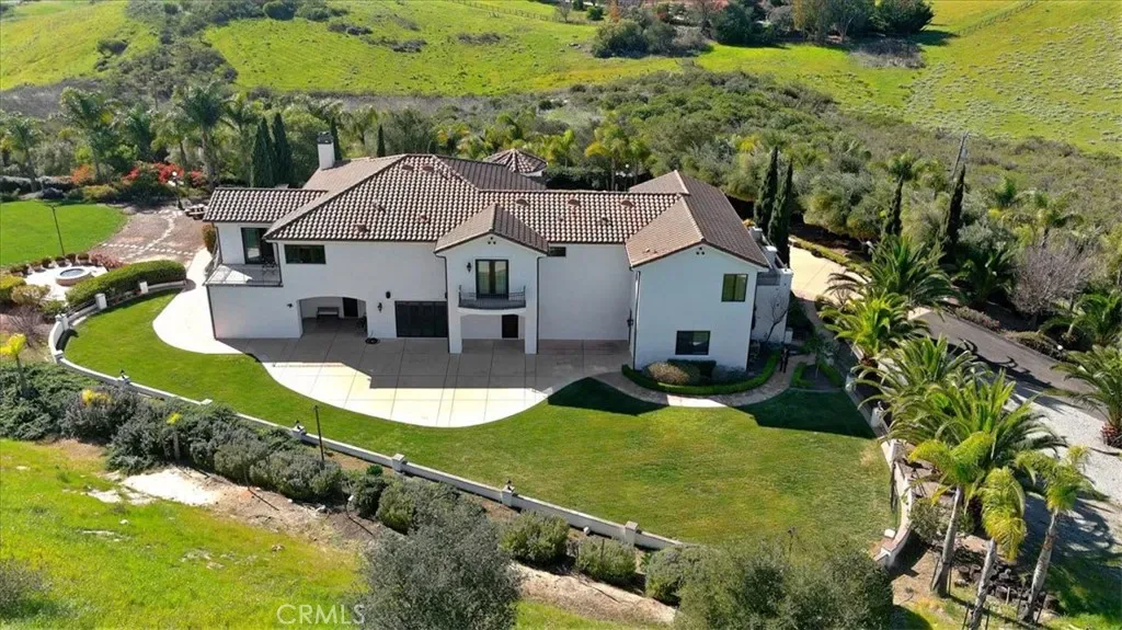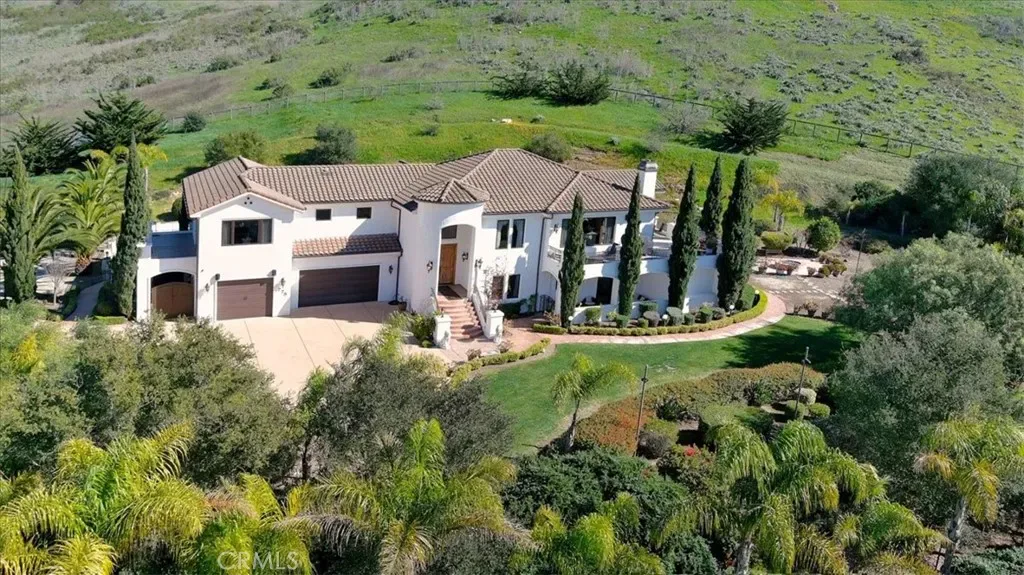 A Mediterranean Estate of Distinction. Set behind the gates of the prestigious Rancho Nipomo community, 775 Riata Lane is a refined Mediterranean estate where timeless architecture, privacy, and modern luxury converge. Approached by a stately palm-lined driveway, the property immediately impresses with its sense of arrival, expansive grounds, and meticulously designed landscape accented by outdoor lighting throughout, creating a warm and dramatic ambiance from day to night. The residence spans approximately 5736 square feet, offering four bedrooms and five bathrooms, including two elegant primary suites—each a private retreat complete with walk-in closets and beautifully appointed ensuite baths. Designed with scale and flow in mind, the home balances grand entertaining spaces with intimate areas for everyday living. At the heart of the home, the chef’s kitchen is both functional and striking, featuring Viking appliances, a generous wraparound bar, and ample space for gathering. The Wine Bar features a Sub-Zero Wine Refrigerator and two refrigerator drawers—perfect for hosting celebrations or casual evenings with family and friends. Expansive living areas open seamlessly to the outdoors, inviting sunset views, open-air entertaining, and a true indoor-outdoor lifestyle. Modern convenience is woven throughout the home with integrated smart-home technology, allowing effortless control of lighting, property access, and music. Whether hosting guests or enjoying quiet evenings at home, the environment adapts seamlessly to every occasion. Surrounded by lush, thoughtfully designed landscaping and positioned to maximize privacy, this estate offers a rare sense of tranquility within a secure, gated setting. Every detail reflects an intentional approach to luxury—one that prioritizes comfort, beauty, and livability—enhanced by an owned solar system with two solar batteries, offering exceptional energy efficiency and peace of mind for daily living. 775 Riata Lane is more than a residence—it is an elevated lifestyle within one of Nipomo’s most exclusive enclaves.