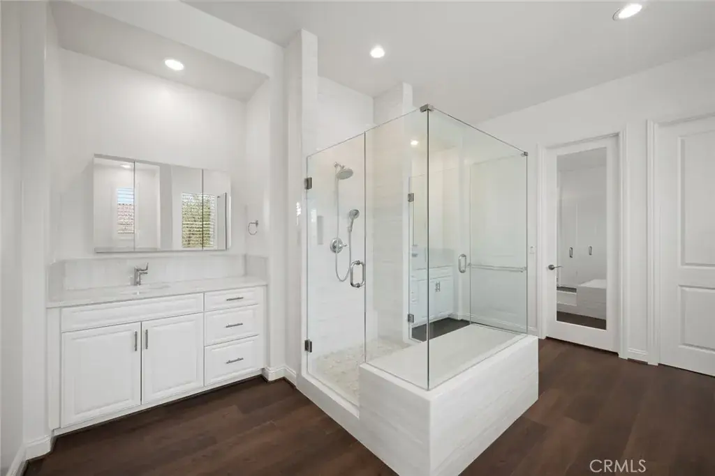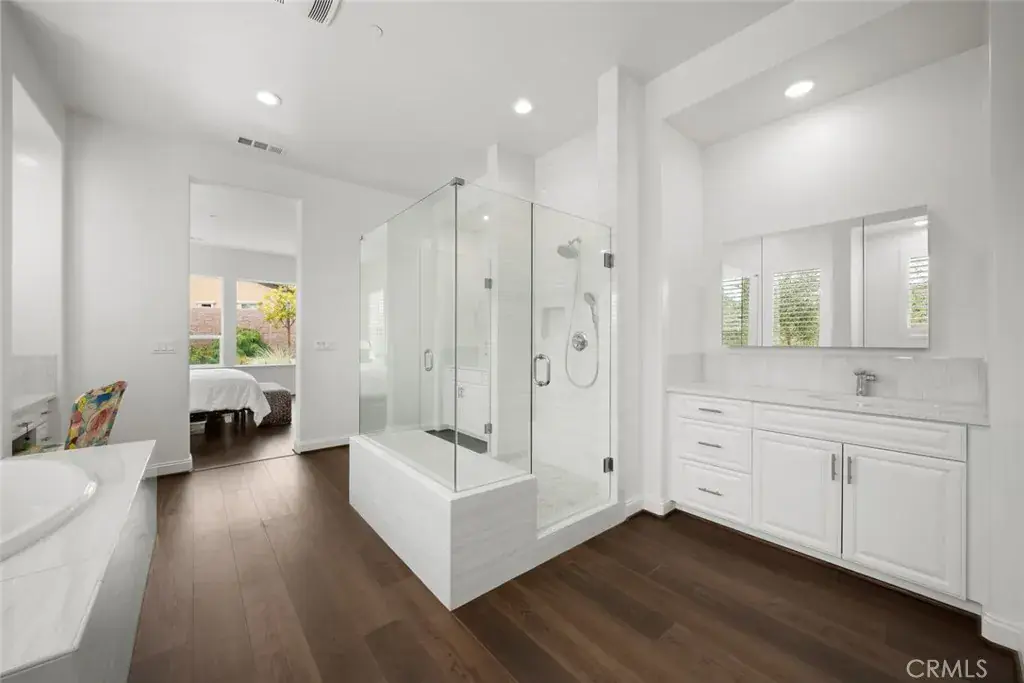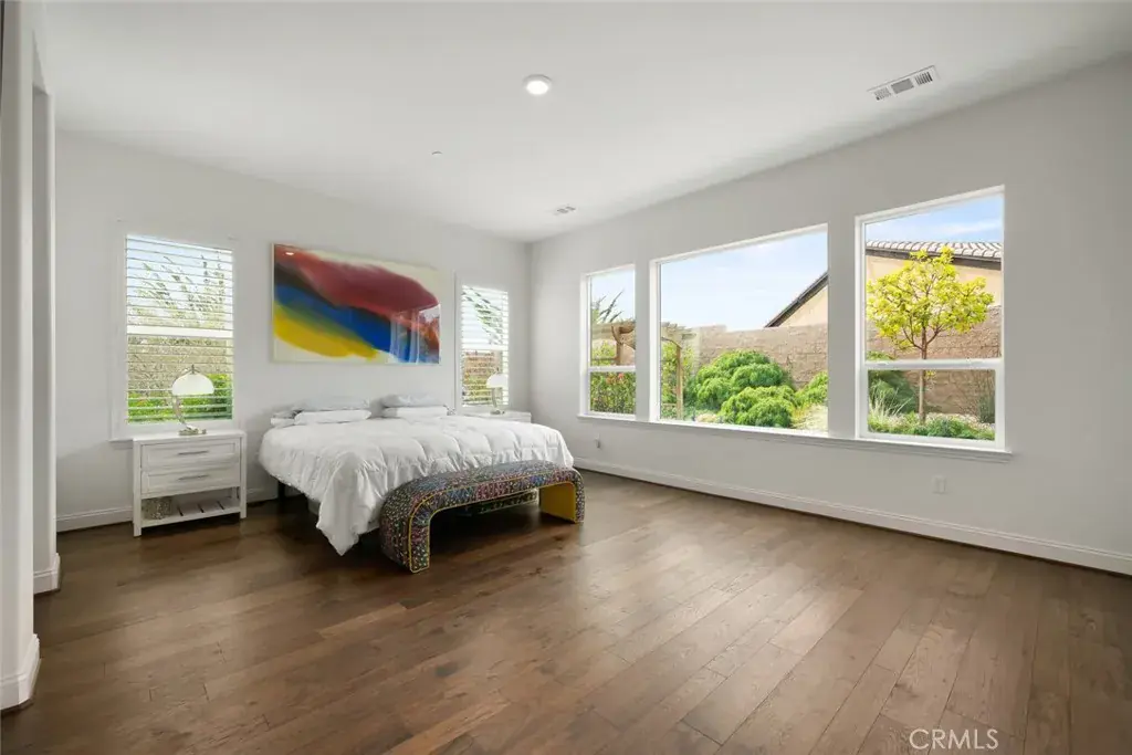 Sleek. Modern. Expansive. Welcome to the Carmel, one of the most highly-sought-after models, offering the space and luxury you deserve. Built in 2017, at 2991 sq. ft., this beautiful modern home features 3 bedrooms, 4 bathrooms, a sunroom and a Casita with private entrance. What makes this floor plan so popular is the flexibility of the main living spaces – a living room, family room and formal dining room surround the kitchen with infinite possibilities how the space is used. This particular Carmel has been highly customized with stunning engineered hardwood floors throughout, custom light fixtures, Plantation shutters (where needed) – the family room features a media/art display wall, the back patio has been completely enclosed to create a unique sunroom, and the entire property has been professionally designed with hardscape and landscaping to bring it to its full potential. Starting in the all-white kitchen of your dreams, you’ll love the top-of-the-line GE Monogram appliances including a built-in refrigerator, 6-burner gas cooktop and double wall ovens, beverage fridge, gorgeous white quartz countertops, raised panel white cabinets (many of the uppers are lighted with display glass), glossy glass tile backsplash, a large quartz island and a substantial walk-in pantry. Entertaining is a breeze – relax in the sunroom or continue outside to the custom waterfall wall with hand painted tiles and fire pit, or meander the garden paths to large sitting areas on both sides of the massive yard. Back inside, your owner’s suite awaits with a spacious bedroom and an all-white luxury spa bathroom with dual sinks, large shower with dual shower heads and seamless glass enclosure, separate Roman tub, vanity, linen storage and a fully outfitted walk-in closet with mirrored door. The guest wing features a bedroom with en-suite all-white bathroom and a self-contained Casita with private entrance, living room, bedroom and all-white spa bathroom with sink, vanity, quartz countertops and tile shower with seamless glass enclosure. Additionally, there’s a powder room, SmartSpace/laundry with built-in work station, solar, and a 2-car garage with EV charging plug. This gorgeous home, located in Trilogy Monarch Dunes, will not last long. Call us today!