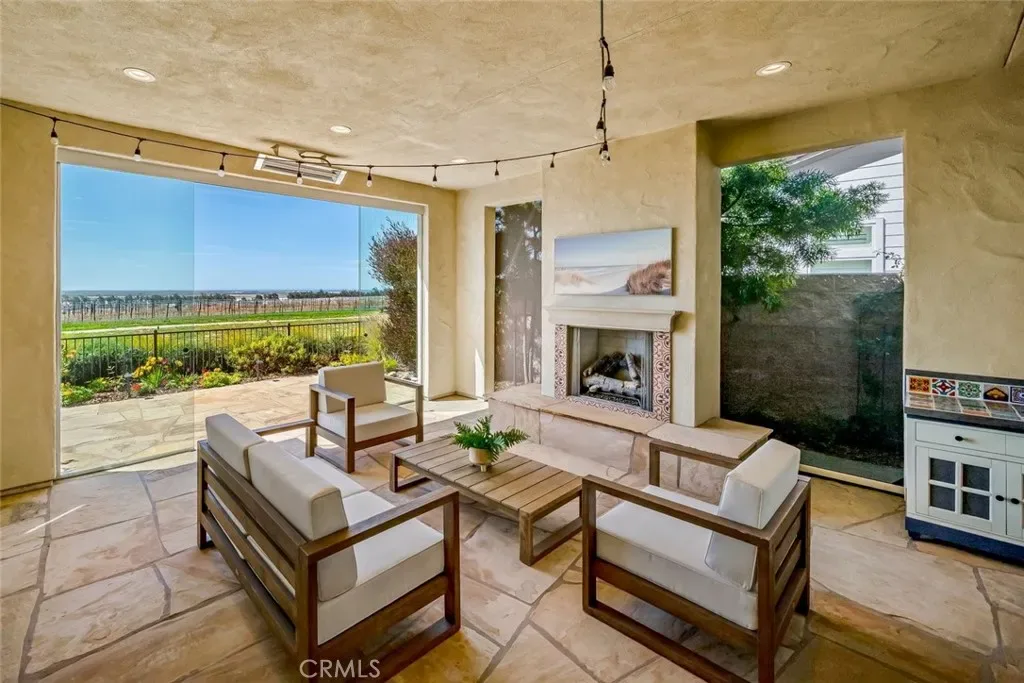 Welcome to the Riviera, a stunning Estate home offering breathtaking views of the Pacific Ocean, sand dunes, vineyard and mountains: Impeccably designed for optimum daily living and stylish entertaining. This 3 bedroom, 3.5 bath, plus office home offers an abundance of upgrades – over $400,000 worth, on top of a $200,000 lot premium. You’ll appreciate the gorgeous engineered wood flooring, plantation shutters, Silhouette shades with blackout option, and luxurious light fixtures throughout. Enter through a Dutch door into a private portico/courtyard with serene landscaping, tiered fountain, radiant ceiling heaters, multiple seating areas, plus a private entrance to the Casita. Step into the main home and you’ll discover a music room/office, plus culinary kitchen, spacious great room and dining space with abundant natural light and incredible open views. The kitchen features rich, soft-close Shaker style cabinetry, GE Profile appliances, including a gas cooktop with stainless hood, double wall oven, built-in refrigerator, white quartz island and countertops and tiled backsplash. Adjacent, is a supersized walk-in pantry and fully-customized Smart Space/laundry room. The outdoor space is equally amazing with a numerous fruit trees, raised garden beds, spectacular views, and the “California Room”, a screened and sliding glass enclosed 320 sq. ft. patio with radiant ceiling heaters, flagstone floors, fireplace with flagstone hearth and a secluded hot tub for sunset relaxation. At night, retire to the owner’s suite, an inviting well-appointed bedroom with a luxurious spa bath featuring a walk-in shower, separate dual sinks, soaking tub, walk-in closet with/dual-sided mirrored door and linen storage. The guest wing includes a powder room, 2nd bedroom with full en-suite bath, and the independent air conditioned Casita with bedroom/sitting area, full bath and walk-in closet. Additionally, there’s a 3-car tandem garage with showroom epoxy floors, storage wall panels, custom cabinetry, and storage. High tech upgrades – LifeSource whole house water filtration system, additional owned solar panels, two owned Tesla power walls and an integrated security system with key-less entries. You’ll never want to leave this meticulously designed home, but when you do, you’ll be part of the unique Trilogy experience with championship golf, pickleball, tennis, member-led clubs, exclusive lifestyle activities, two award-winning restaurants, fitness center and Sandalwood Spa.