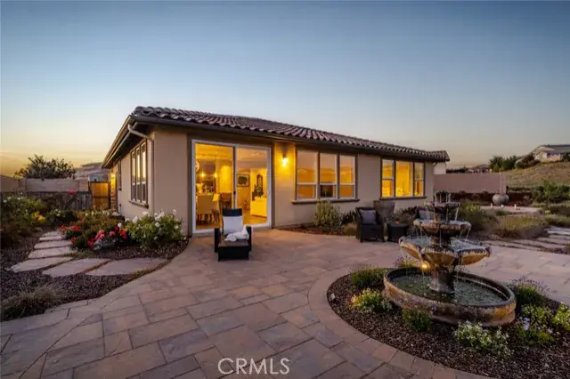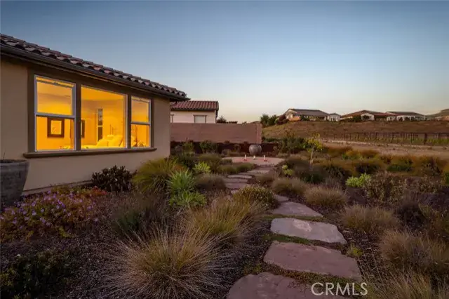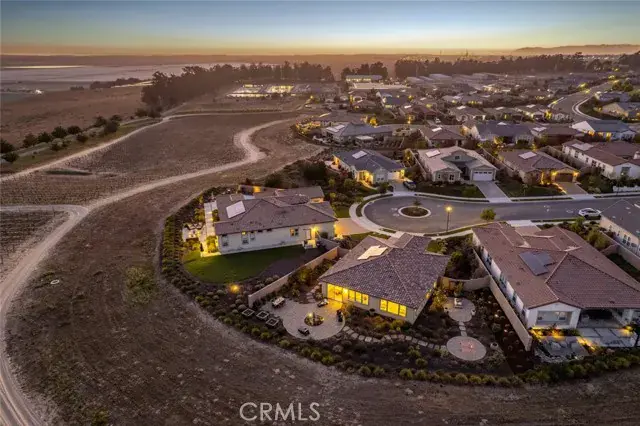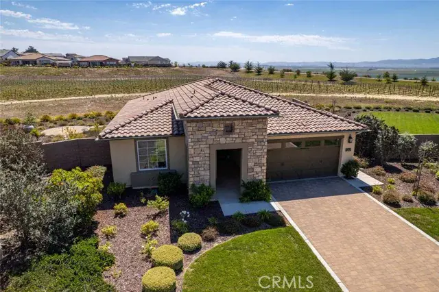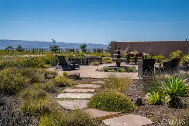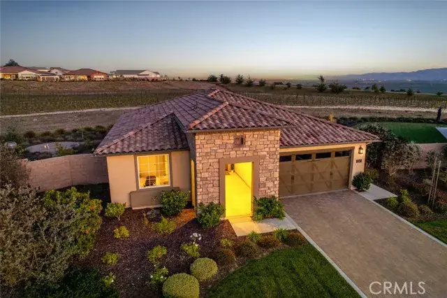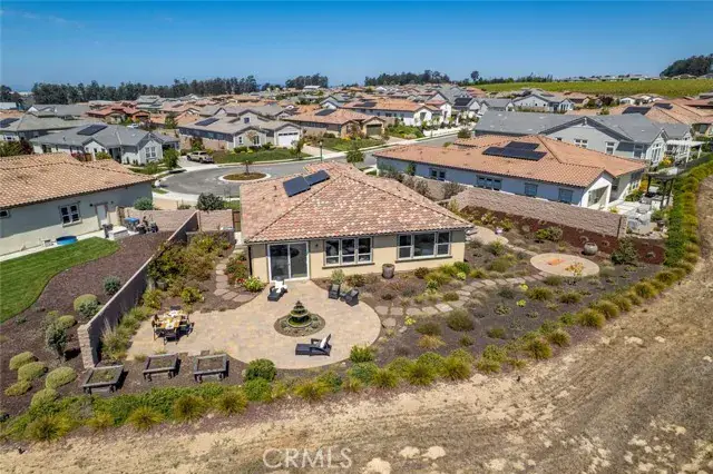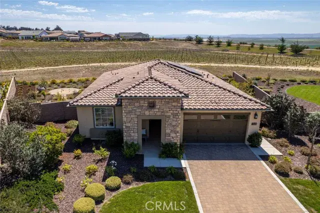 Step into unparalleled elegance with this single-level Solvang model, perched on a premium almost 11,000sf vineyard and mountain view lot in Trilogy at Monarch Dunes. Nestled at the end of a quiet cul-de-sac, this 2-bedroom plus office, 2-bathroom SOLAR and SMART home exudes the effortless sophistication of a model home, with tile floors, neutral palettes, & abundant natural light. The award-winning floor plan centers around a spacious great room with soaring ceilings, seamlessly connecting to a stunning kitchen featuring a custom waterfall-edge island, quartz countertops, top-tier GE Profile appliances, reverse osmosis system plumbed into fridge & spigot, five-burner gas stove, and stained maple soft-close cabinetry with pull-out drawers. A large pantry & oversized laundry room with desk and ample storage add both function and style. The primary suite is a serene retreat, offering breathtaking vineyard and mountain views, high ceilings, a spa-like bath with dual sinks, quartz countertops, walk-in shower with bench and decorative tile, & an expansive walk-in closet. The guest wing includes a corner bedroom with two large windows, a bath with soaking tub/shower combo, and an office , perfect for work, study or even a 3rd bedroom! Designed for modern living, this smart home features sophisticated automation: lighting with dimmers, thermostat, solar, water heater, appliances, remote entry, and voice activation via Alexa and Siri, along with Ring, MyQ, Rachio irrigation, internet booster for outdoor WIFI coverage, smart HQ, and programmable outdoor lighting/fountain. Step outside to your private resort: four distinct patios for alfresco dining, sun lounging, yoga, or morning reading, surrounded by lush, low-maintenance landscaping with beautiful fountain setting a peaceful tone with rose and veggie gardens, five fruit trees, and panoramic vineyard and mountain vistas. Stone accents, paver driveway, and southern exposure complete the idyllic setting. Live the Trilogy lifestyle with championship golf, fine dining, luxury spa, state-of-the-art fitness, and endless social opportunities. Relax in the expansive backyard and enjoy sweeping views of wildflower meadows and even NASA and SpaceX launches from Vandenberg. Golf course community with all the amenities right at your fingertips & just five miles from Oso Flaco Lake State Park dunes and beaches. Exceptional design, luxury, and technology converge to create a home that’s more than a residence—it’s a lifestyle.