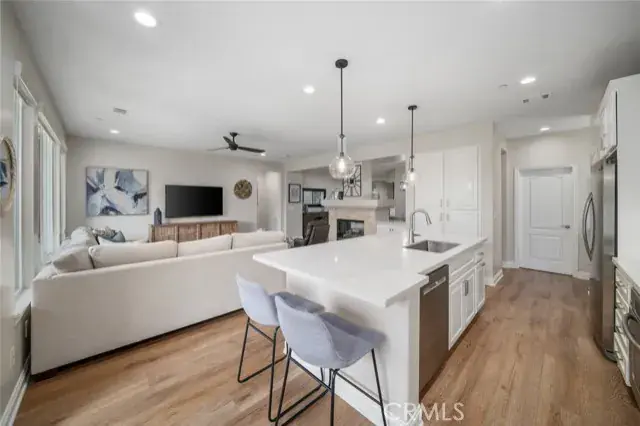 Step inside to discover an inviting floor plan with luxury vinyl plank flooring, bright white cabinetry, and quartz countertops. The spacious kitchen features a pantry and a charming buffet nook—ideal for a coffee bar or extra serving space.